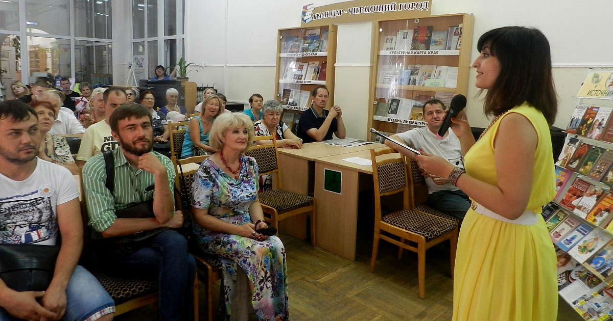 Стихи кубанских авторов о семье и любви читала одна из постоянных гостей библиотеки Евгения Щитинина.