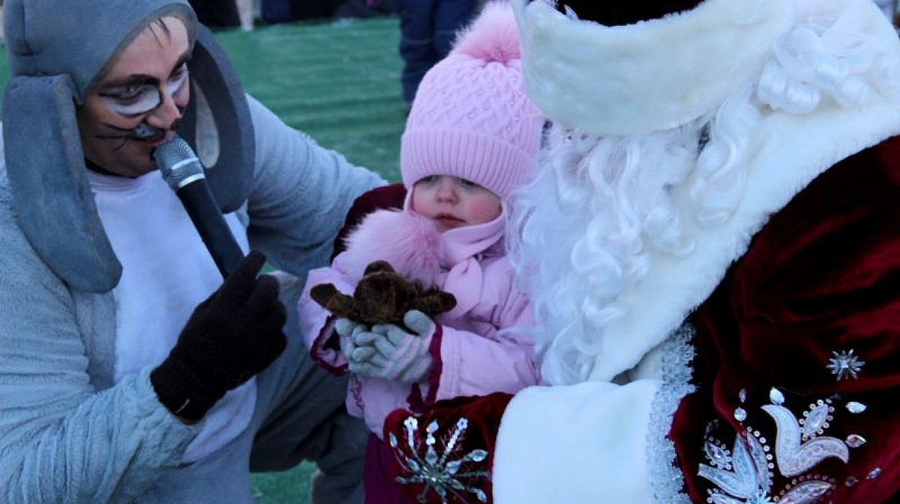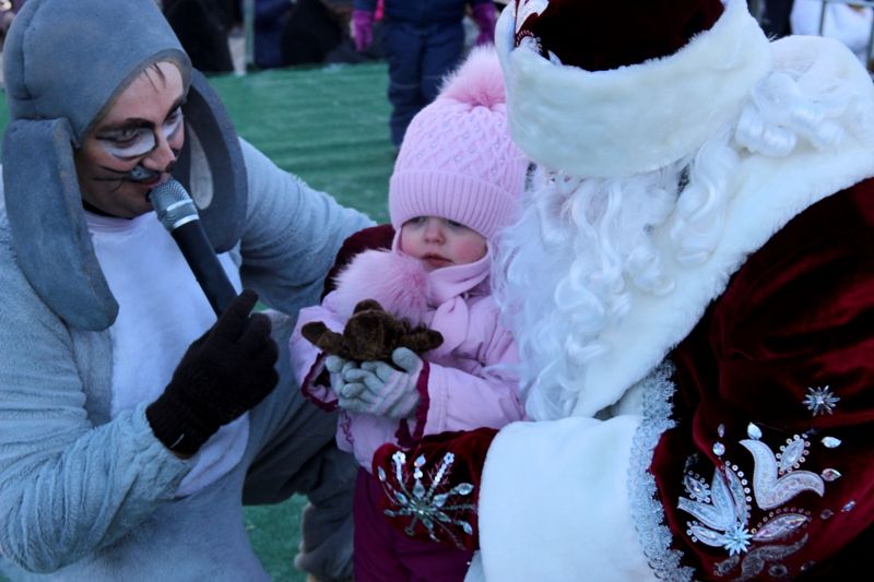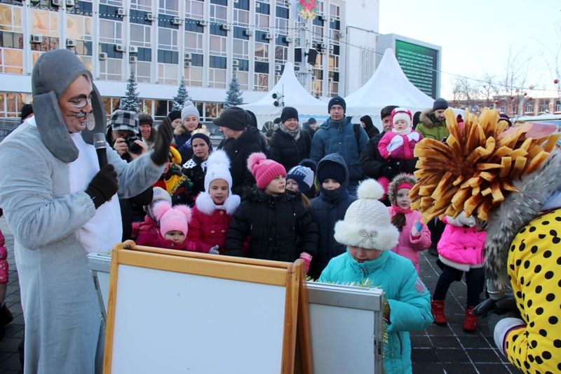 Перед началом мероприятия состоялось интерактивное знакомство всех гостей на площади и ростовых кукол — Кота Леопольда, Волка и Лисы. Персонажи танцевали с детьми, фотографировались и дарили хорошее настроение всем в это морозное утро.