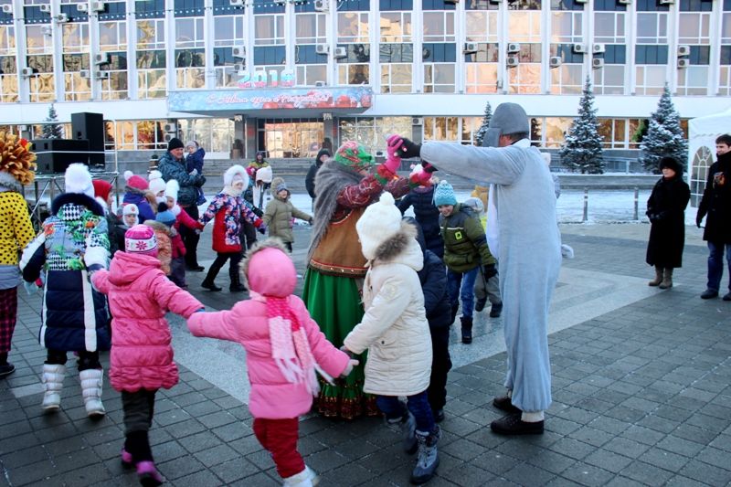 11 января 2016В новогодние каникулы у главной ёлки города на Театральной площади прошла праздничная программа, подготовленная артистами Западного округа «У зимних ворот игровой хоровод!».
