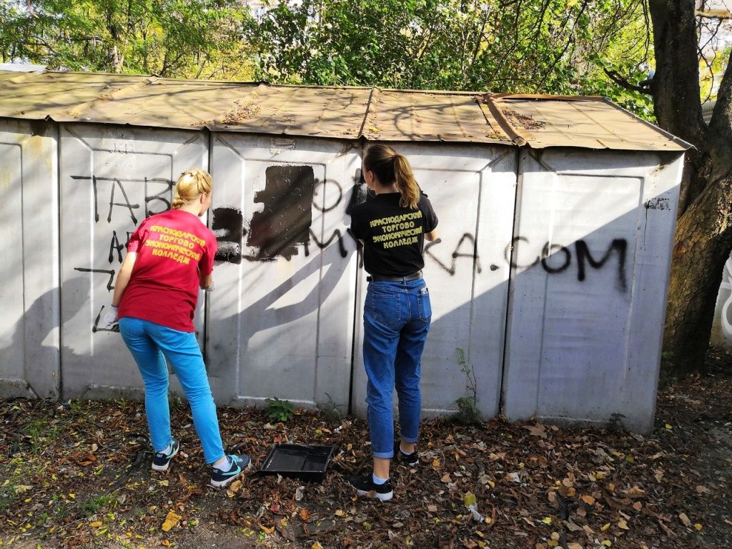 11 октября 2018На ликвидацию настенной "рекламы" от наркоторговцев члены Mолодёжного совета вместе со студентами Краснодарского