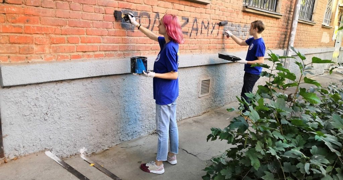 Молодежный cовет Западного округа провел акцию по устранению надписей о продаже наркотиков