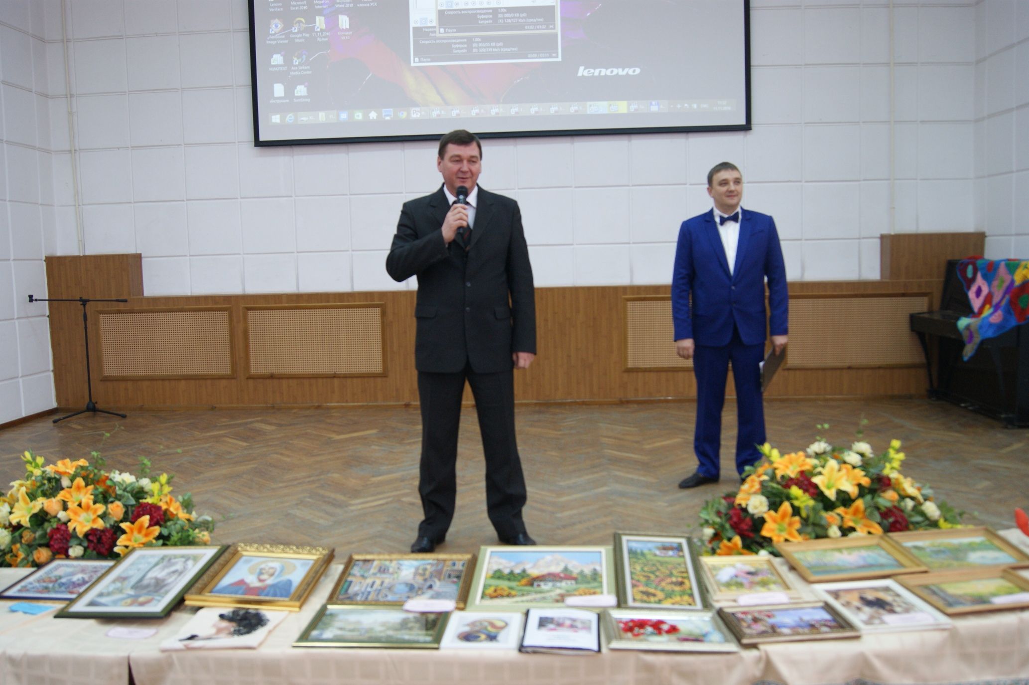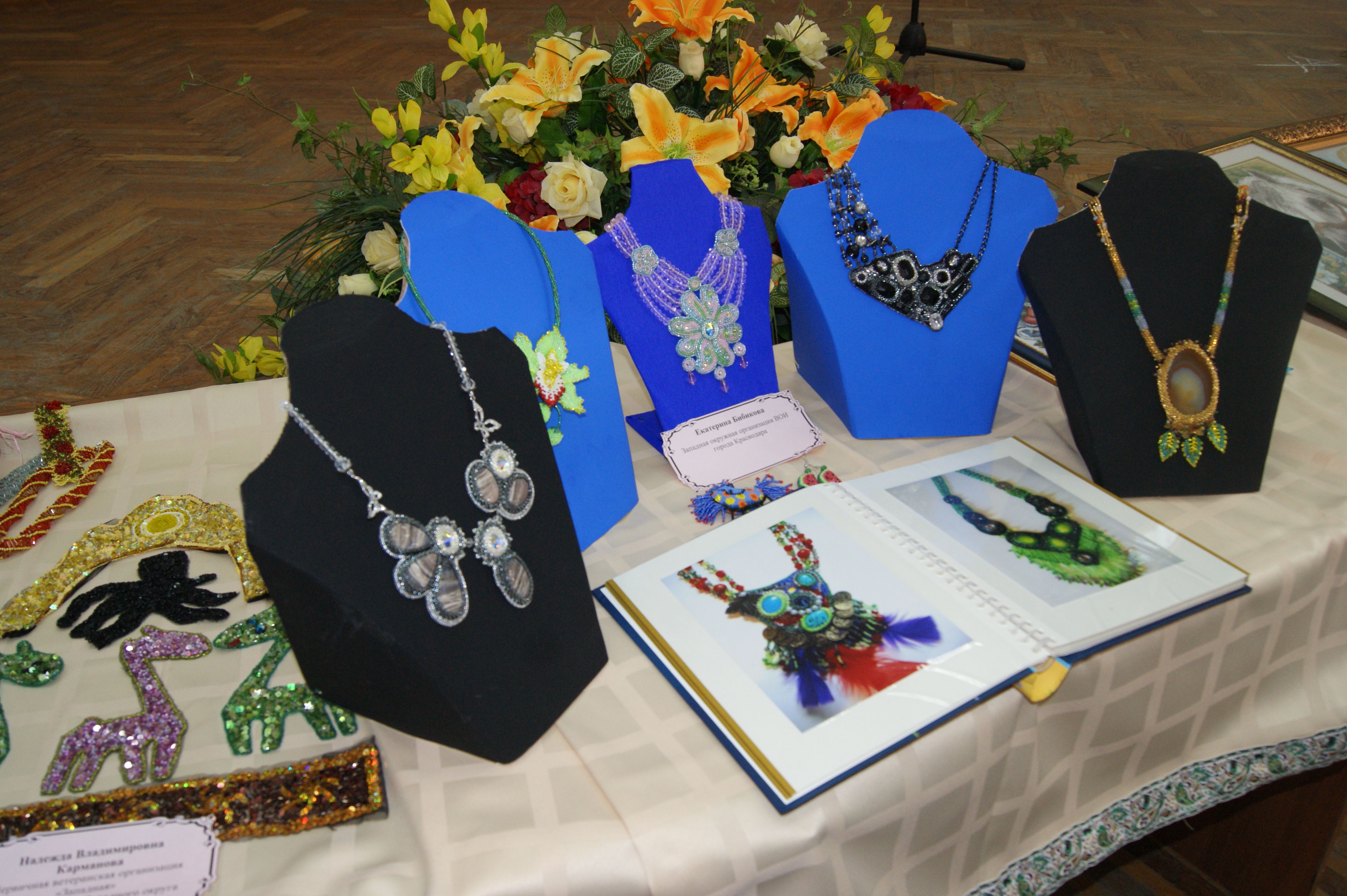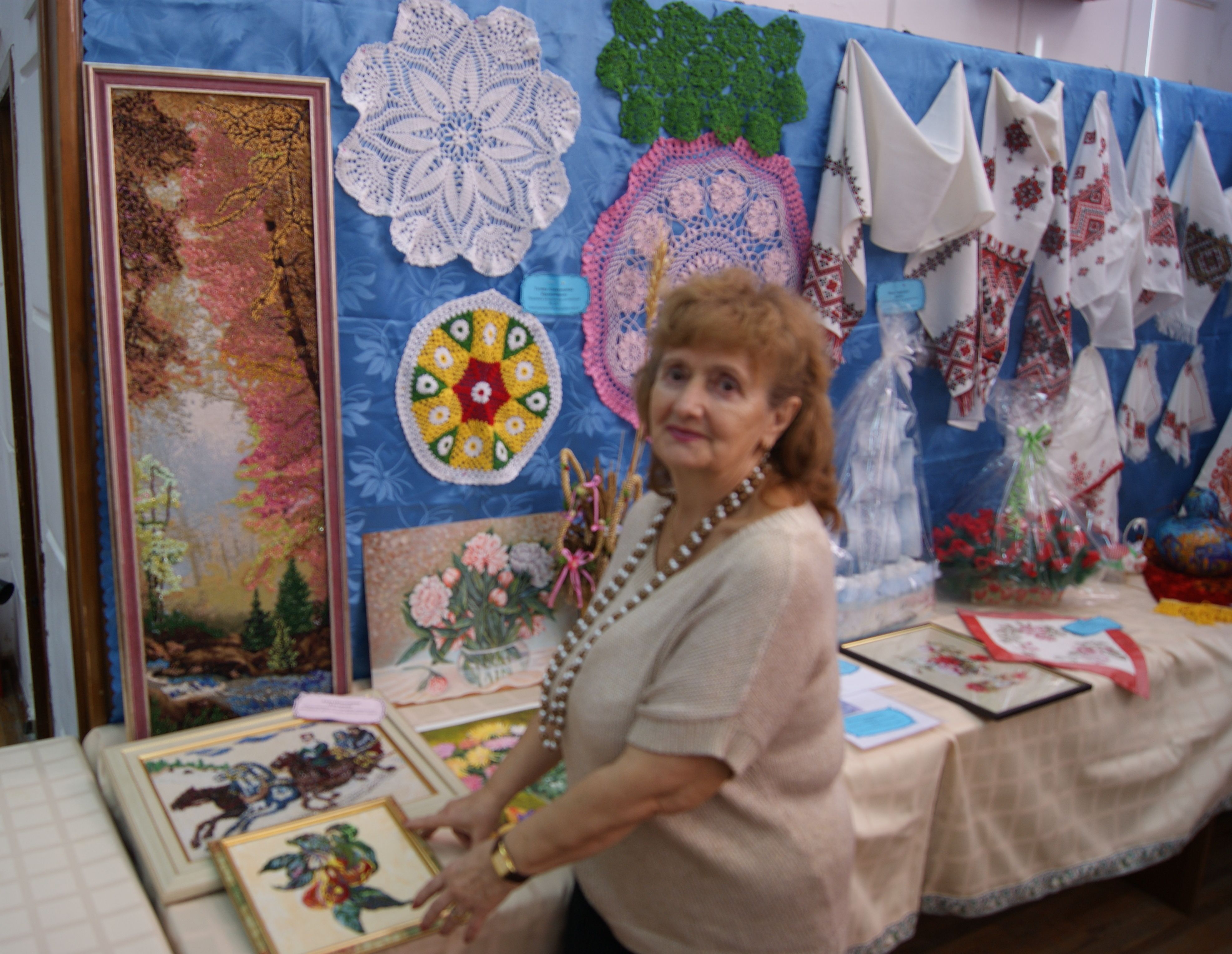 Жюри и гости с интересом рассматривали работы, представленные на выставке. Всевозможные картины, написанные маслом, гуашью, вышитые бисером, крестом, выполненные с элементами аппликации, разнообразные поделки и игрушки из бумаги, ниток и бисера, салфетки, скатерти, рушники, расписные тыквы и т.д.