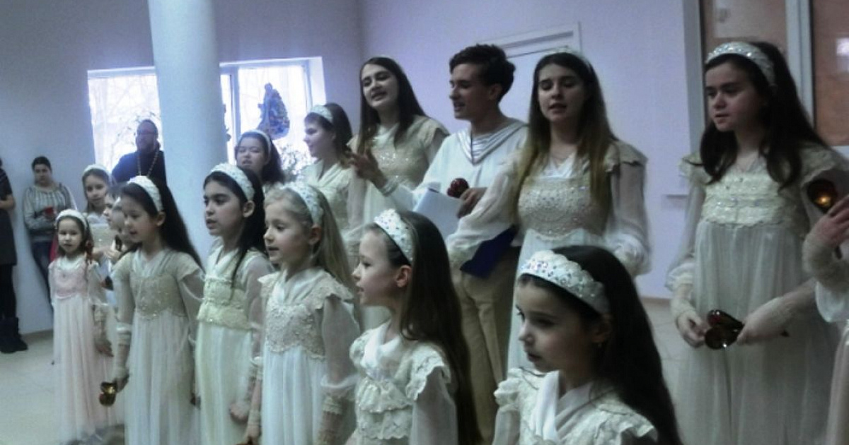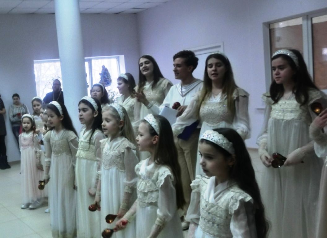 Это первый Рождественский утренник, проводимый служителями храма. Настоятель Храма святого Димитрия Солунского иеромонах Корнил Иванов поздравил прихожан с праздником Рождества Христова.