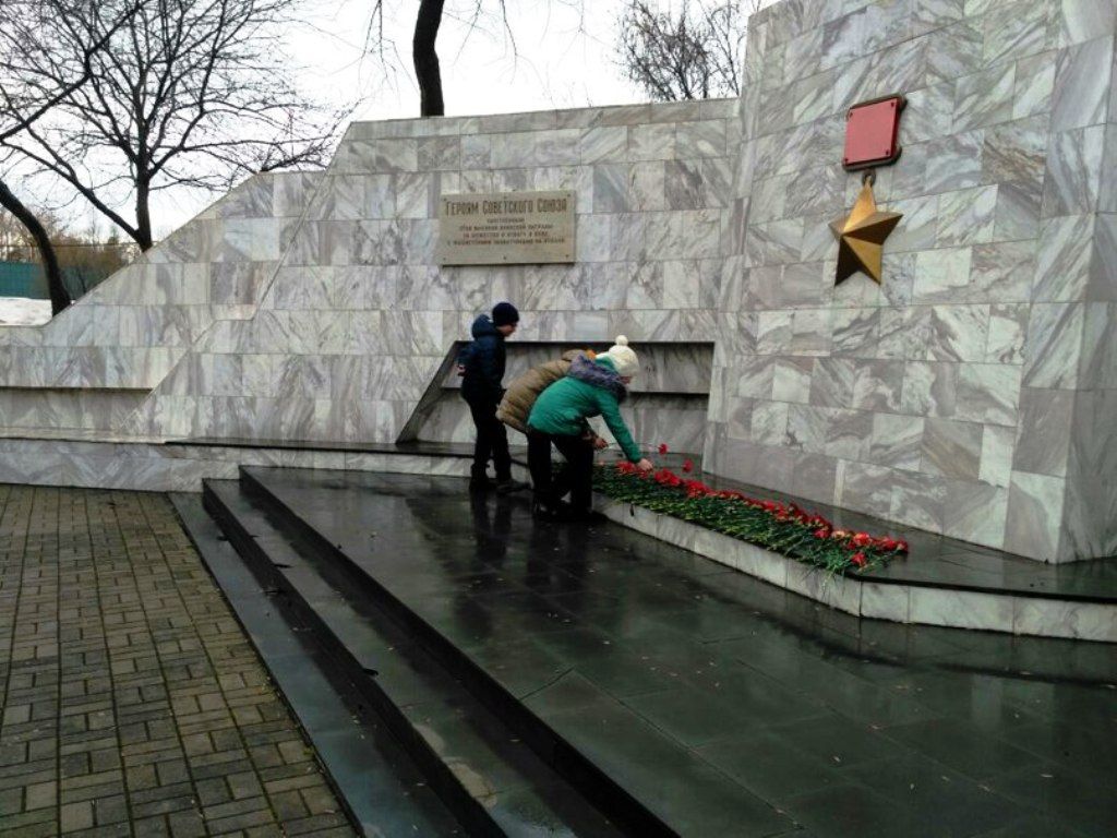 В парке Победы прошло возложение цветов у памятника Героям Советского Союза удостоенных этой награды за мужество и отвагу в боях на Кубани в Великой Отечественной войне.