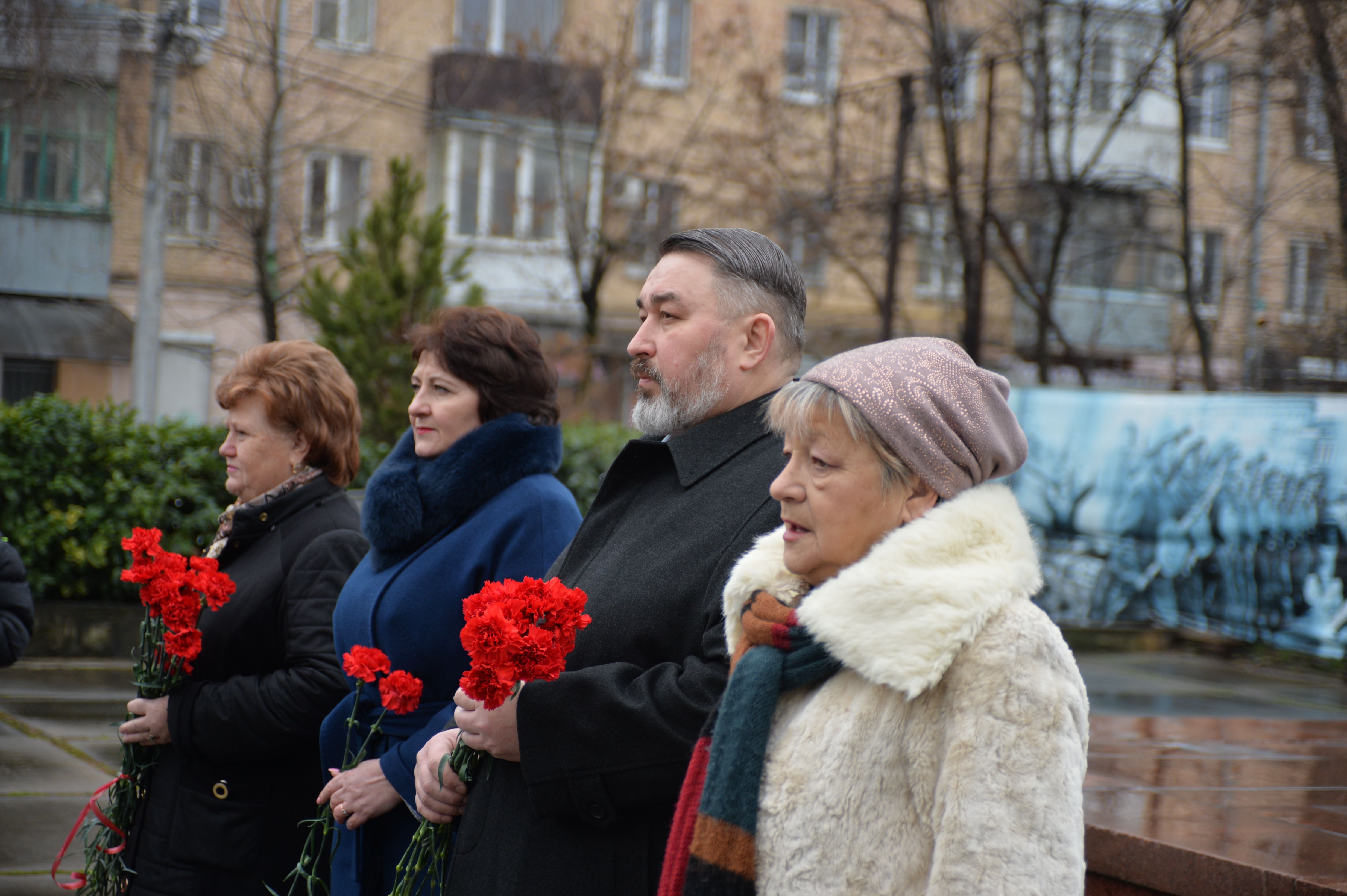 В возложении приняли участие депутат городской Думы Краснодара по 3 избирательному округу Игорь Самохин, председатель общественной организации инвалидов, пенсионеров Западного округа — Ольга Клименко с активом, директор Гимназии № 25 Светлана Краева с учащимися, а так же ребята из детского сада № 23.