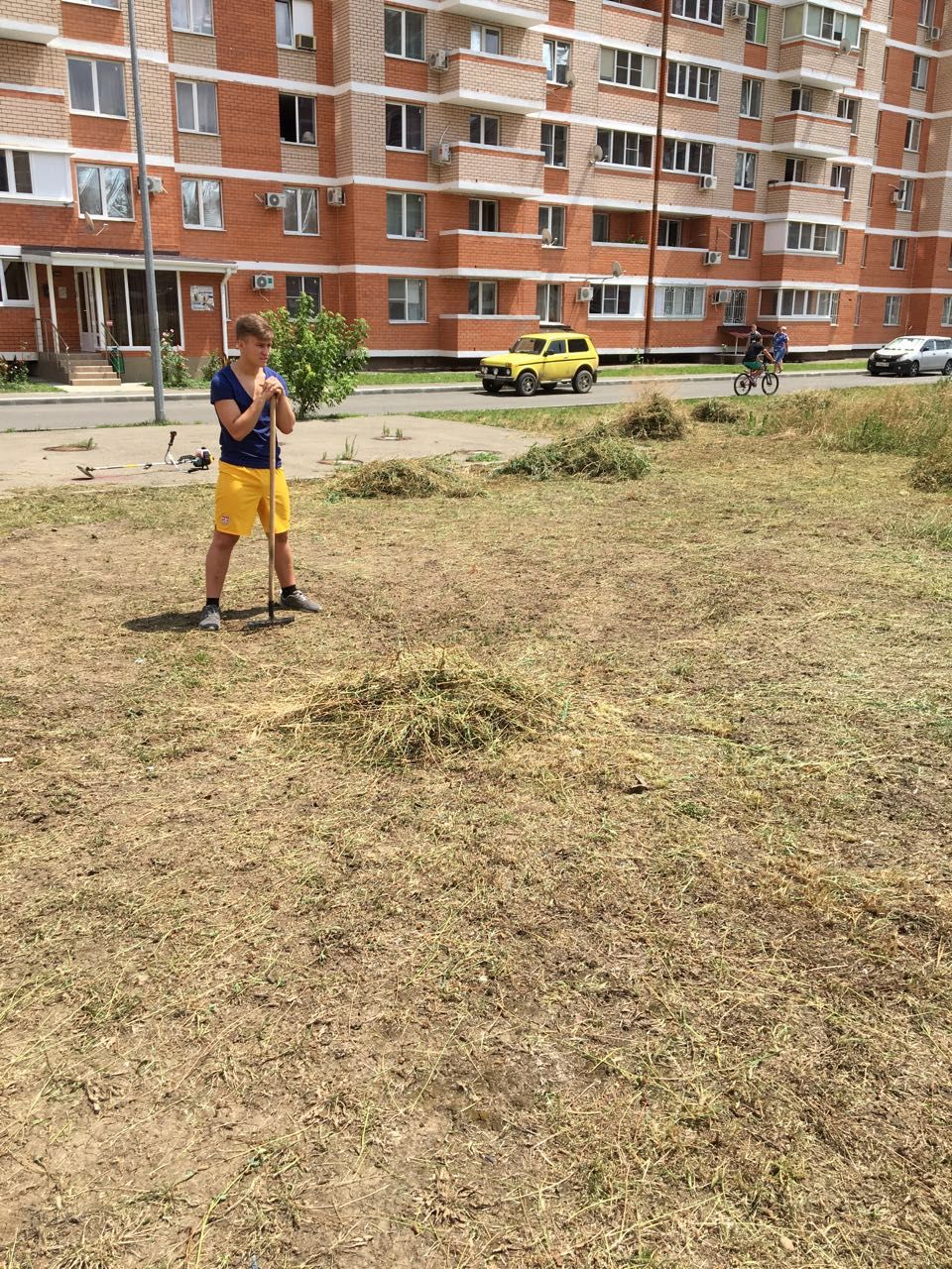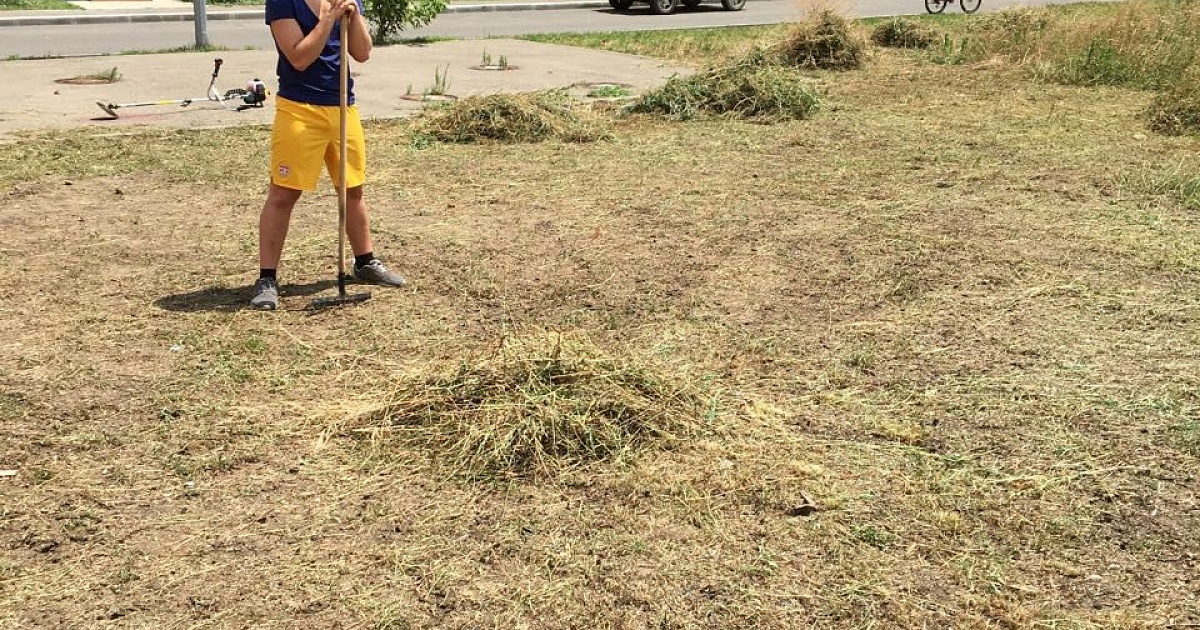 Так, 11 июля на придомовой территории дома 350/12 по улице калинина, специалистами отдела, совместно с инициативной группой жильцов дома Александром Леоновым, Анной Гуровой, Линой и Денисом Кибалко, были выполнены работы по покосу амброзии и другой сорной растительности общей площадью 9600 кв.м.