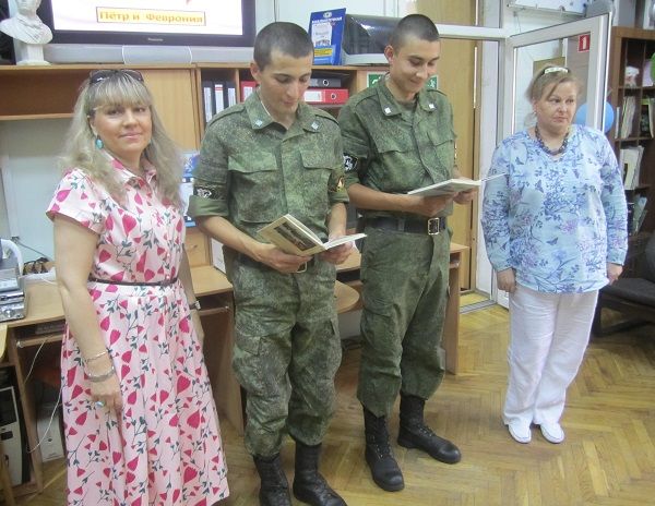 В исполнении ведущих и присутствующей молодежи прозвучали фрагменты из памятника древнерусской письменности «Повесть о Петре и Февронии Муромских», стихи и поэмы современных авторов.