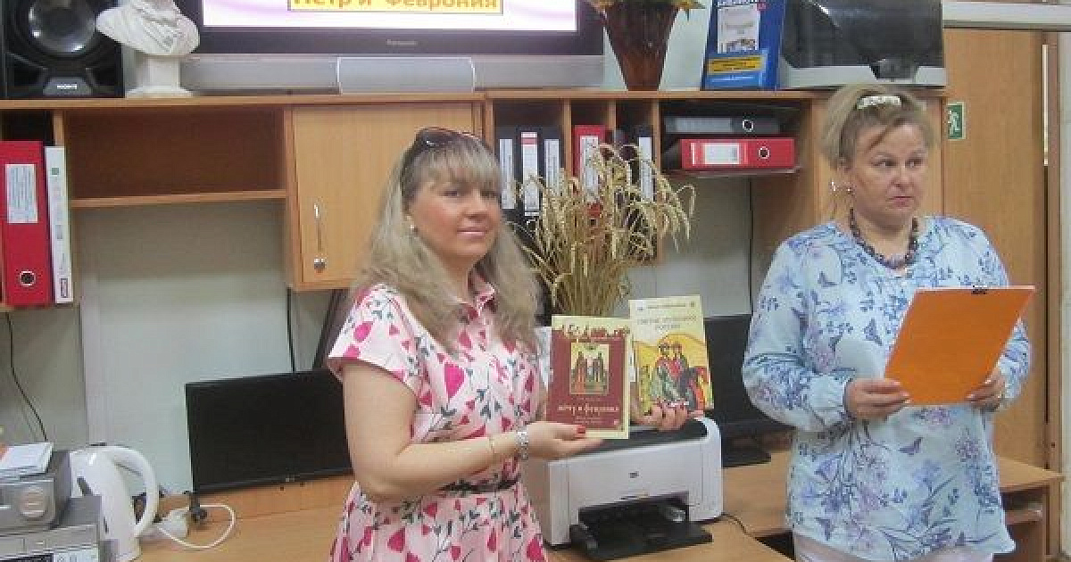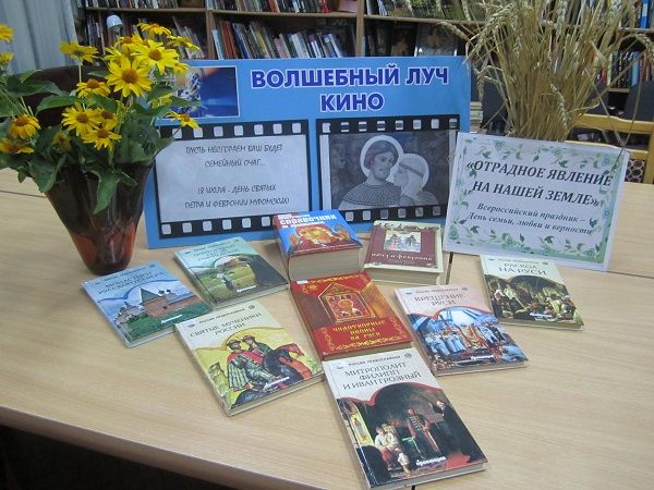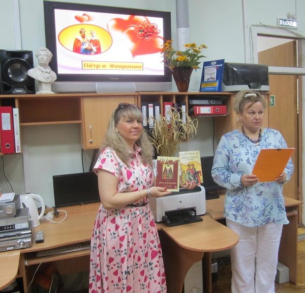 Сотрудники библиотеки подготовили к просмотру видеопрезентацию по теме мероприятия, рассказали об истории возникновения праздника — Всероссийского дня семьи, любви и верности, о мирской жизни благоверных князей и их духовных делах.