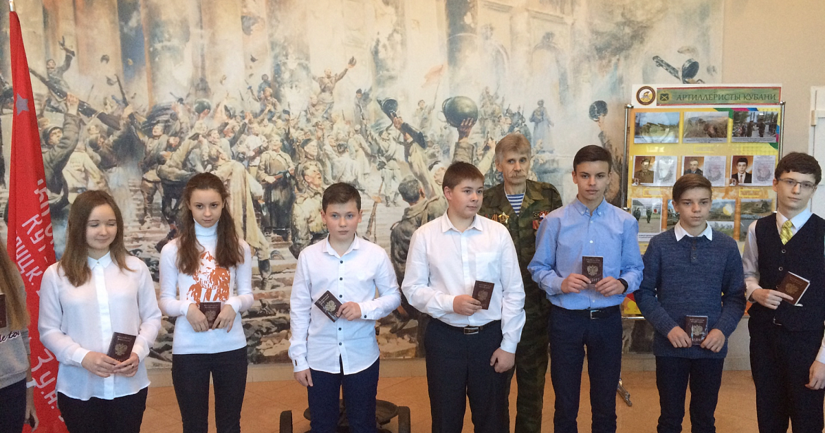 Поздравил и вручил первый документ заместитель главы администрации Западного округа Владимир Левченко, также ребят поздравили председатель и заместитель председателя общественной организации ветеранов (пенсионеров, инвалидов) войны, труда, Вооружённых сил и правоохранительных органов Западного округа города Краснодара Геннадий Дубров и Сергей Крутой.