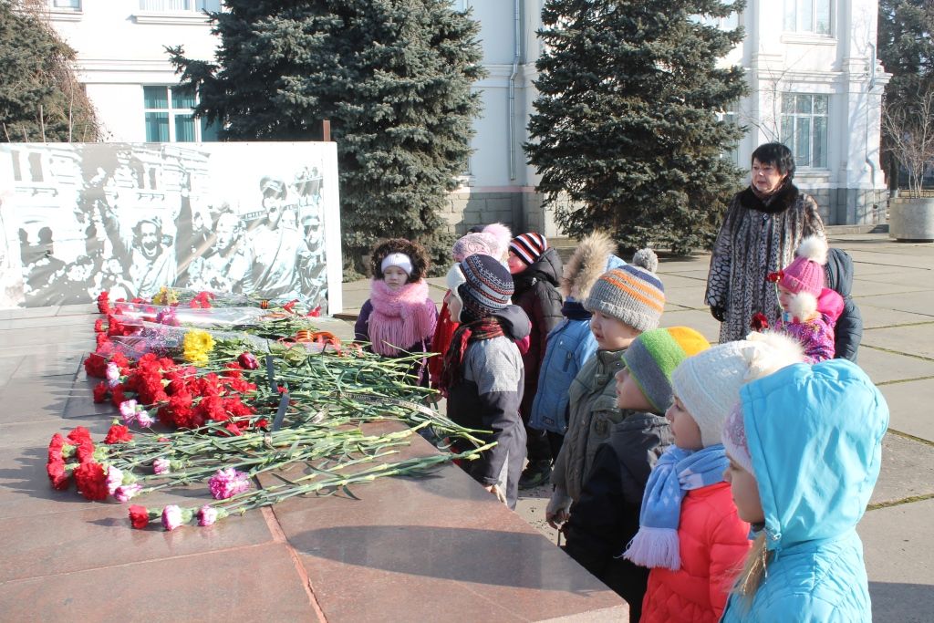 13 февраля 2017Традиционно группа «Капелька» детского сада № 23 участвует в акции «Цветы у обелиска». Эта акция проводится в честь освобождения Краснодара от фашистских захватчиков.