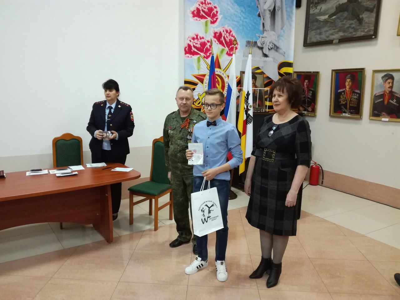 Поздравил и вручил первый документ заместитель главы администрации Прикубанского внутригородского округа города Краснодара Фролова Татьяна Григорьевна и заместитель председателя совета ветеранов Прикубанского округа, ветеран боевых действий в Афганистане Дударь Михаил Александрович.