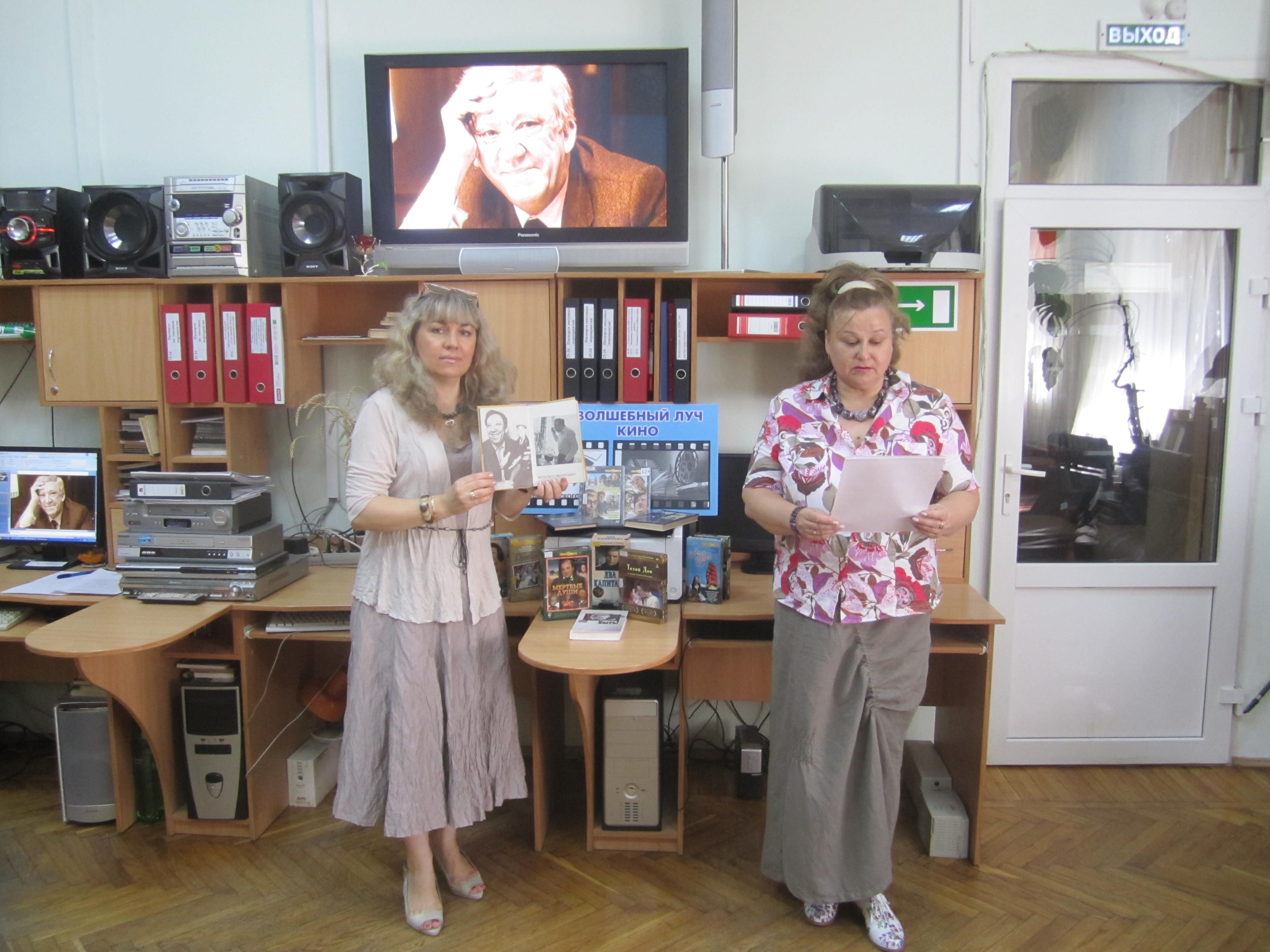 Сотрудники библиотеки рассказали о советских актерах — участниках Великой Отечественной войны: Павле Луспекаеве, Михаиле Пуговкине, Леониде Гайдае, Анатолии Папанове, Юрии Никулине, А. Смирнове, Л. Быкове.