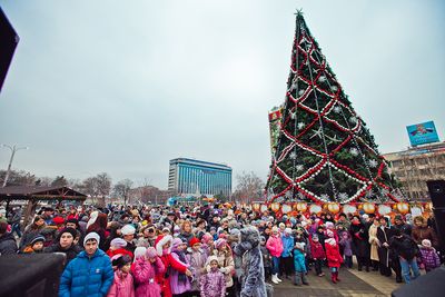 В этот солнечный день у главной ёлки города Дед Мороз и его помощники вместе с мальчишками и девчонками водили весёлые хороводы, читали стихи, участвовали в конкурсах. Не давали скучать ребятам и весёлые ростовые куклы. Самые активные ребята получали подарки из волшебного мешка.