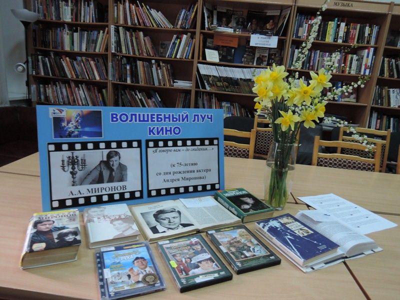 Сотрудники отделов литературы по искусству и справочно-информационной службы библиотеки им. Н. А. Некрасова подготовили обзоры литературы о жизни и творчестве знаменитого актера. Вниманию зрителей предложили просмотр фрагментов из документального фильма «Андрей Миронов. Последние 24 часа», из кинокартин «Человек с бульвара капуцинов», «Бриллиантовая рука», «Небесные ласточки», «Мой друг Иван Лапшин», «Ревизор» и другие.