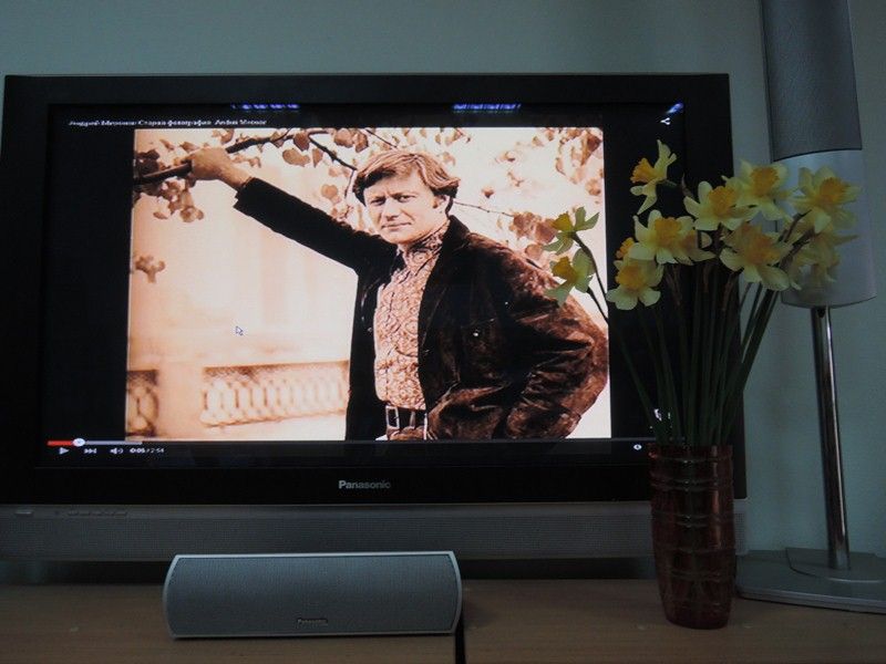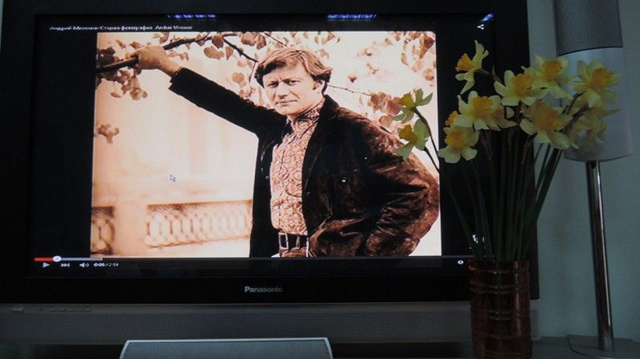 В качестве музыкального оформления мероприятия прозвучали отрывки из песен в исполнении актера.