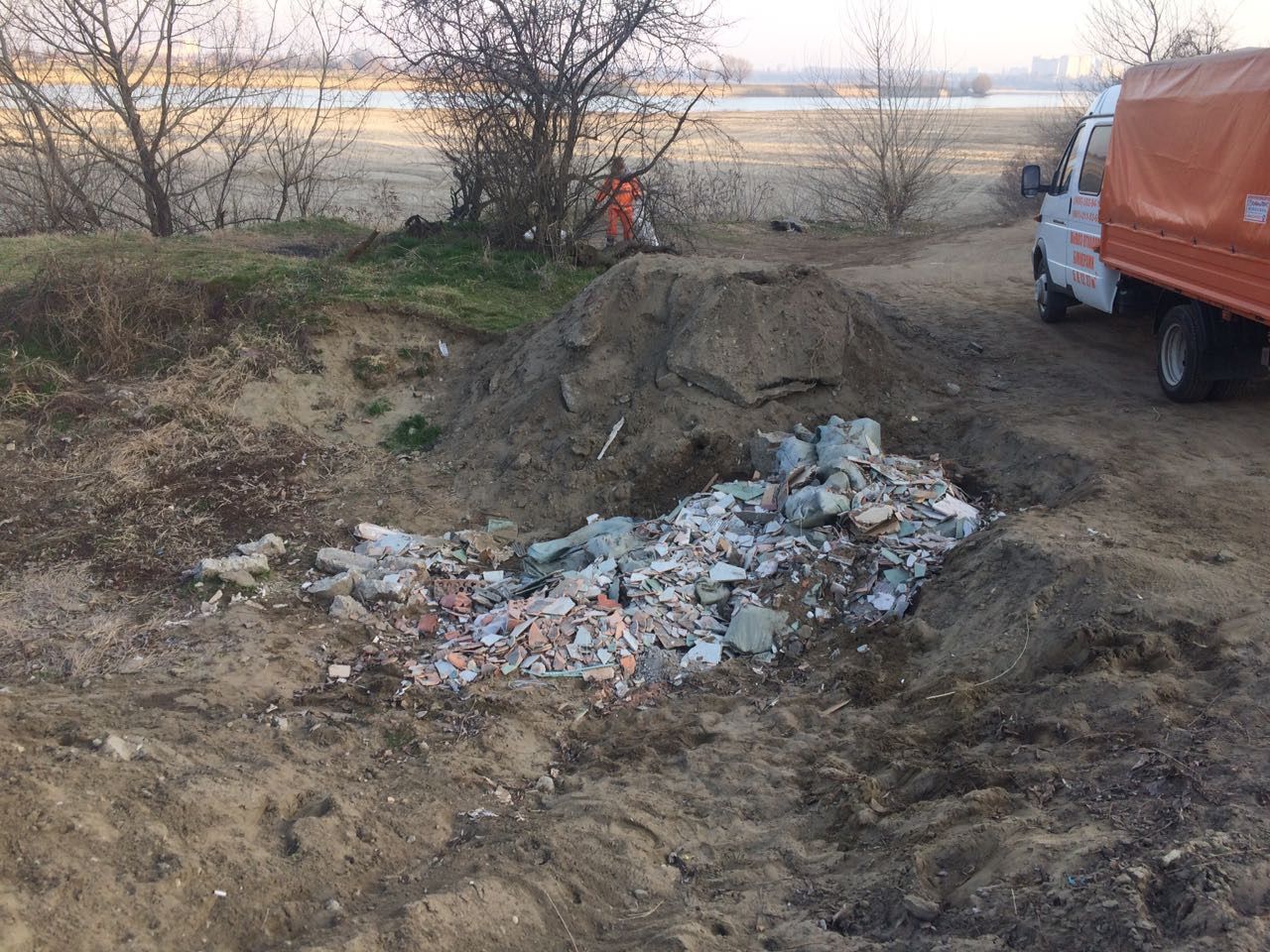 По инициативе администрации Западного округа силами привлеченной организации с применением специализированной техники выполнены работы по уборке строительного мусора вдоль береговой линии реки Кубань, разравниванию грунта.