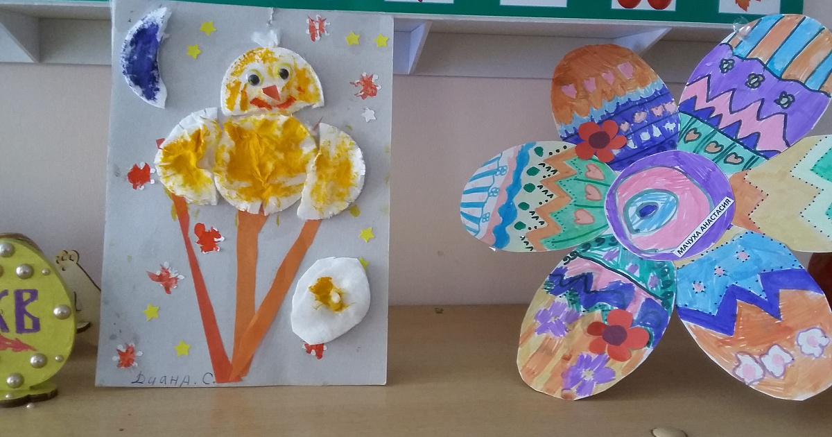 Ребята старшего дошкольного возраста сделали подделки: «Пасхальные яйца», «Куличи», а дети младшего дошкольного возраста выполнили аппликацию «Пасхальные яйца».