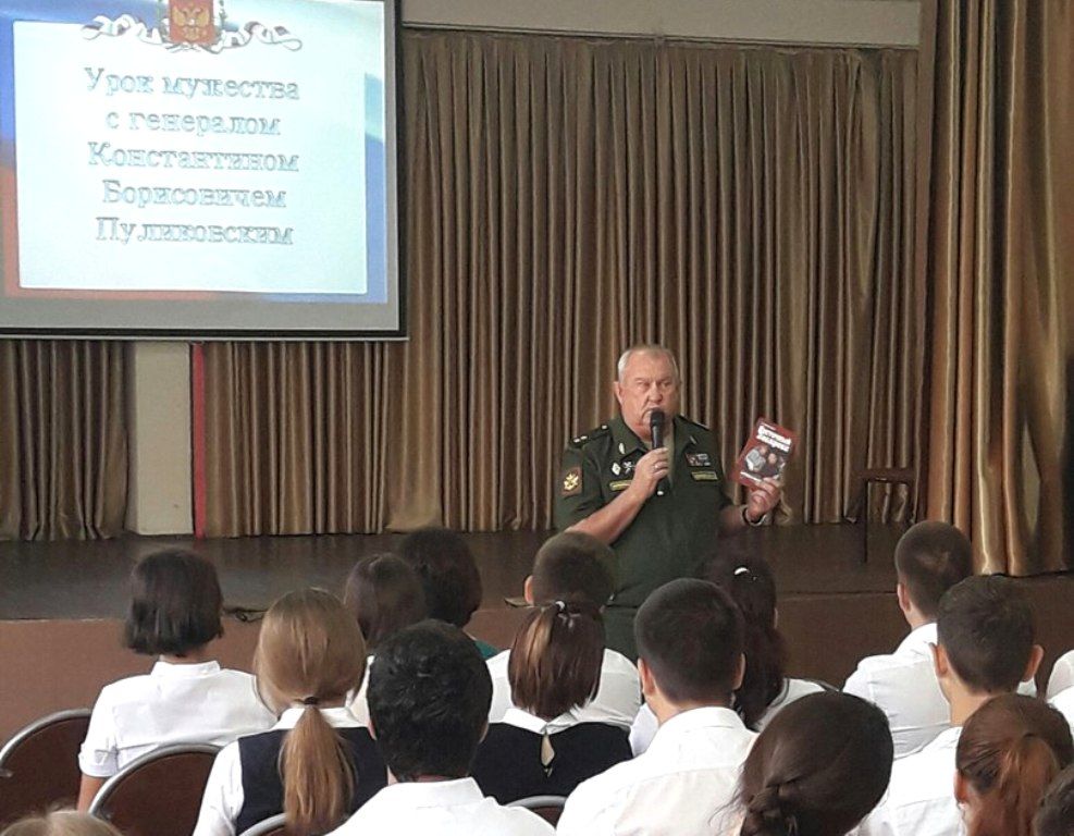Учащиеся узнали интересные факты из биографии Константина Борисовича, участвовали в обсуждении его книг «Украденное возмездие» и «Восточный экспресс», обсудили современные проблемы вооруженных сил. Генерал Пуликовский поделился с учащимися своими личными впечатлениями о встречах с Президентом Российской Федерации Владмиром Владимировичем Путиным и другими выдающимися личностями.
