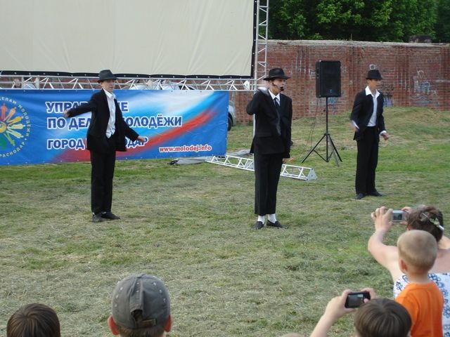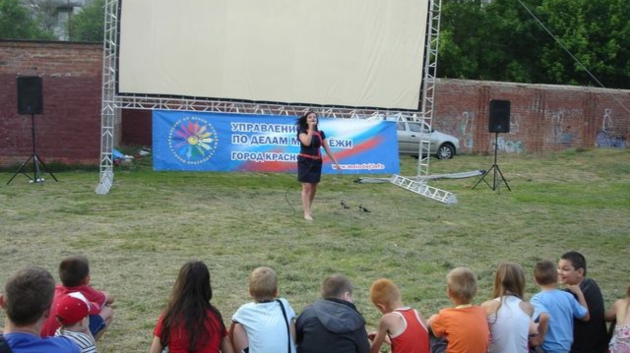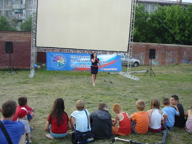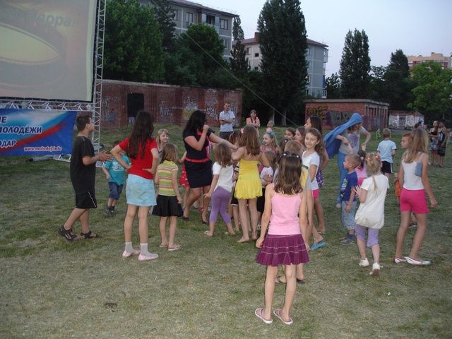 Во дворе школы перед большим экраном собрались взрослые и дети. Перед демонстрацией фильма молодежь принимала активное участие в конкурсах с розыгрышем билетов на финальную игру «Открытой краснодарской городской лиги КВН». Также, собравшихся порадовали интересной концертной программой.
