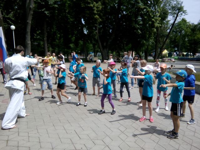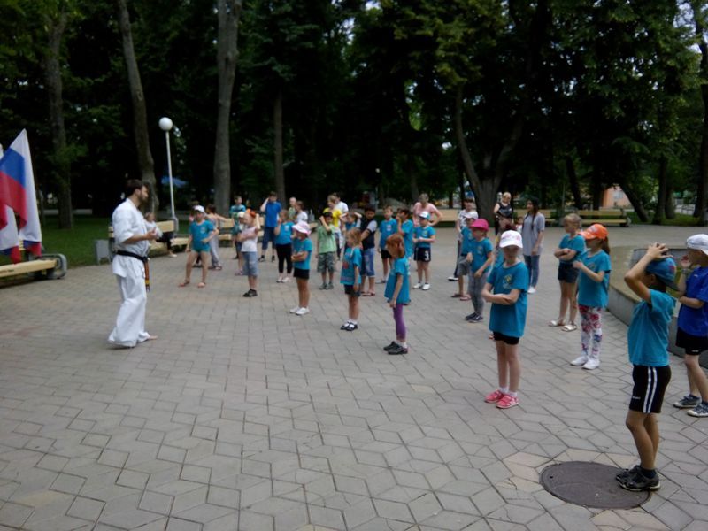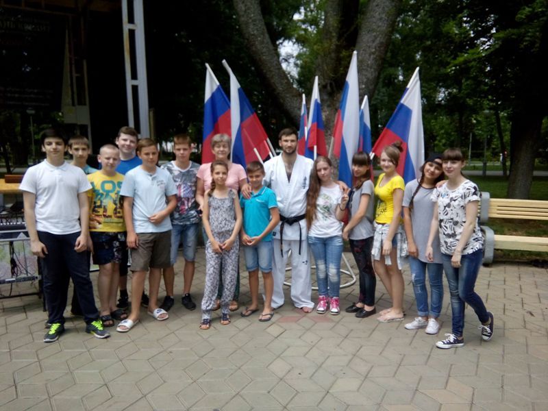 Под девизом «Поверь в себя» зарядку для ребят провел трехкратный чемпион Юга России, призер первенства России, кандидат в мастера спорта по киокусинкай карате-до, обладатель «чёрного пояса» Тимур Мельгош.