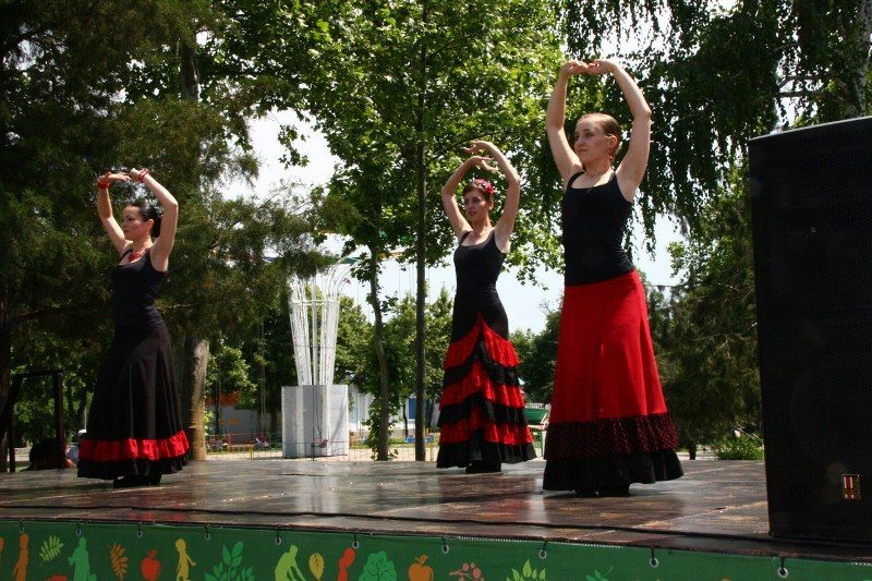 На центральной сцене парка праздничное настроение гуляющим создавали студии эстрадного вокала «Musical soul», «Butterfly» «Диамант», театр танца «Ритм», вокальный ансамбль «Voice», воспитанники школы танцев «Гранат», «Без правил» и школа танца фламенко «Эстрелла», а также народный хор Кубанского казачьего войска «Кубаночка» и вокальный ансамбль «Еще не вечер» Дома культуры Западного округа.