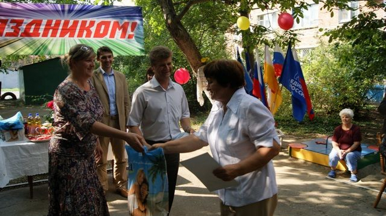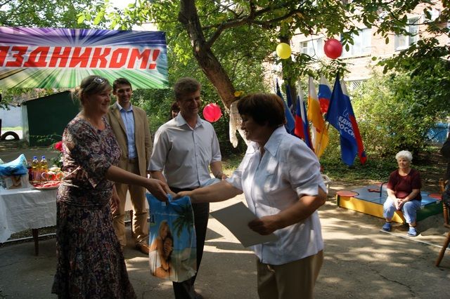 Провела праздник «хозяйка» этого двора – руководитель ТОС № 211 Надежда Гацкова. Она рассказала собравшимся об истории строительства дома, его заселении, которое прошло 21 год назад, о почетных жителях дома, а также жильцах, ухаживающих и благоустраивающих придомовую территорию.Руками жителей созданы и благоухают красивые цветники, посажены деревья, при поддержке депутата построена прекрасная детская площадка. Во дворе дома уютно, чисто, слышен детский смех, во двор заходят отдохнуть жители из других домов.