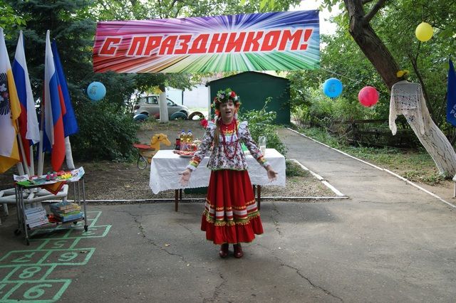 К проведению праздника двор красиво украсили, накрыли праздничный стол. В программе праздника выступили дети, проживающие в доме, они читали стихи, пели песни, показали рисунки и поделки, сделанные своими руками к празднику, за что получили подарки от администрации округа.