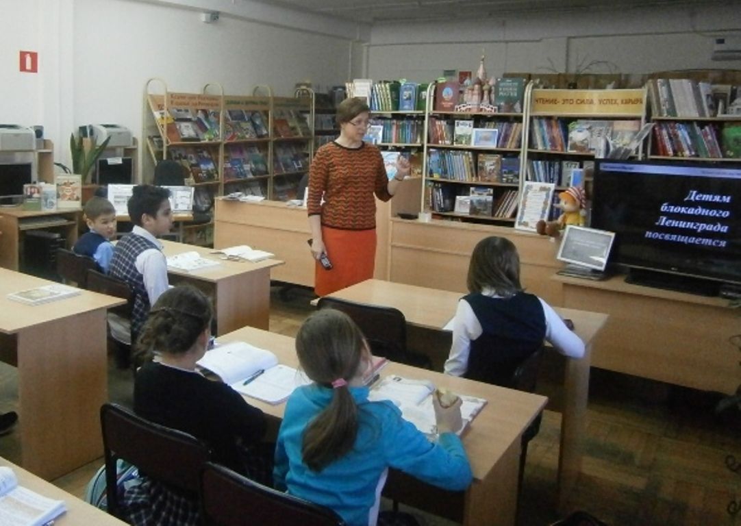 Ведущая рассказала ребятам о том, как маленькие ленинградцы сражались в блокадном городе с голодом, холодом, смертью, как с первых дней войны старались помочь взрослым: вставали за станки вместо ушедших на фронт родителей, строили оборонительные укрепления, ухаживали за ранеными. Школьники узнали, что более пяти тысяч ленинградских подростков были награждены медалями за оборону города.