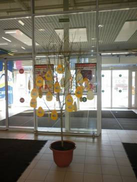 С 5 апреля по 13 апреля на Кубани стартовала масштабная акция «Сделай подарок сироте и себе к Пасхе». В крупных торговых центрах города размещены деревья «Вербочки желаний» на ветвях которой развешены пасхальные открытки с желаниями детей-инвалидов.