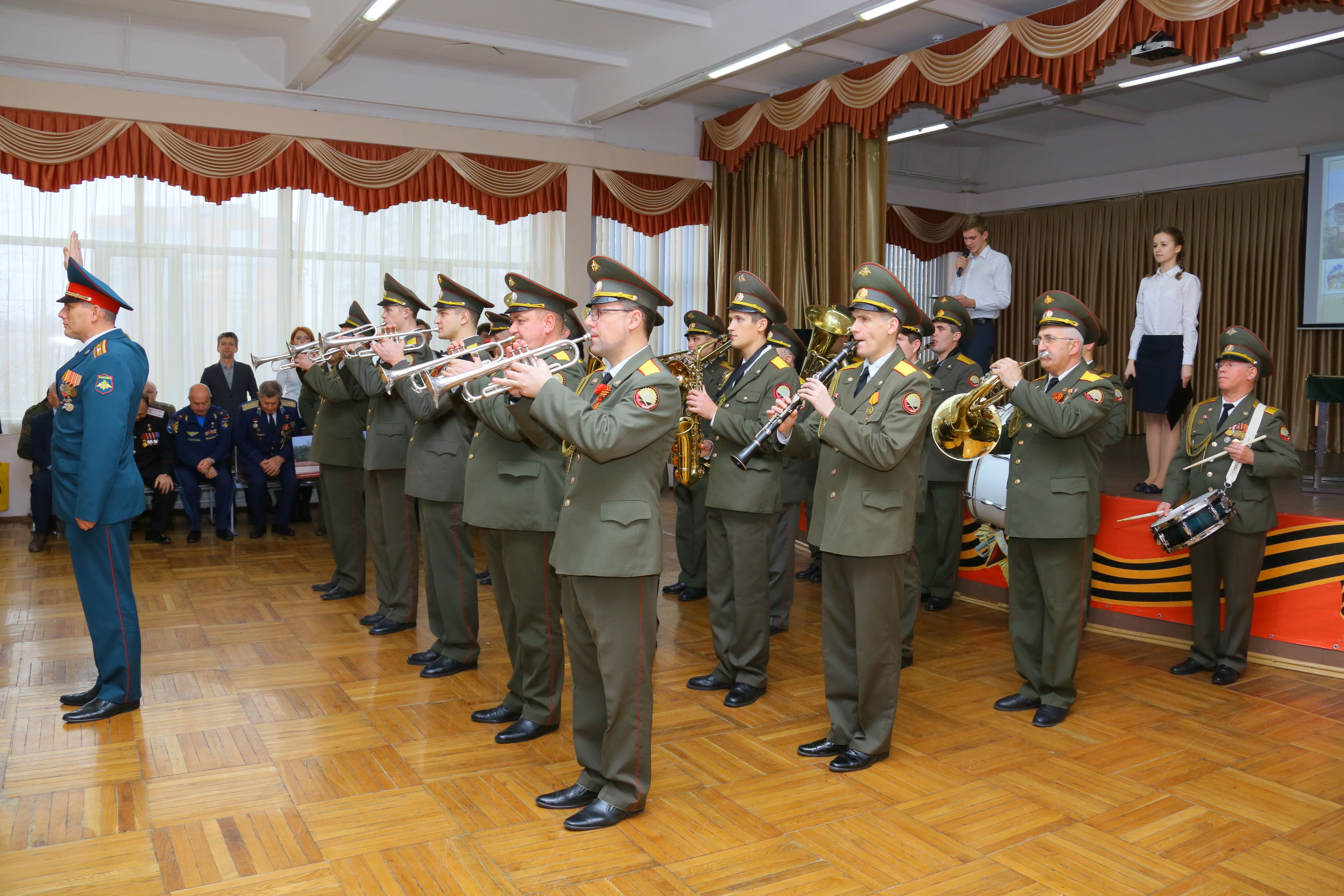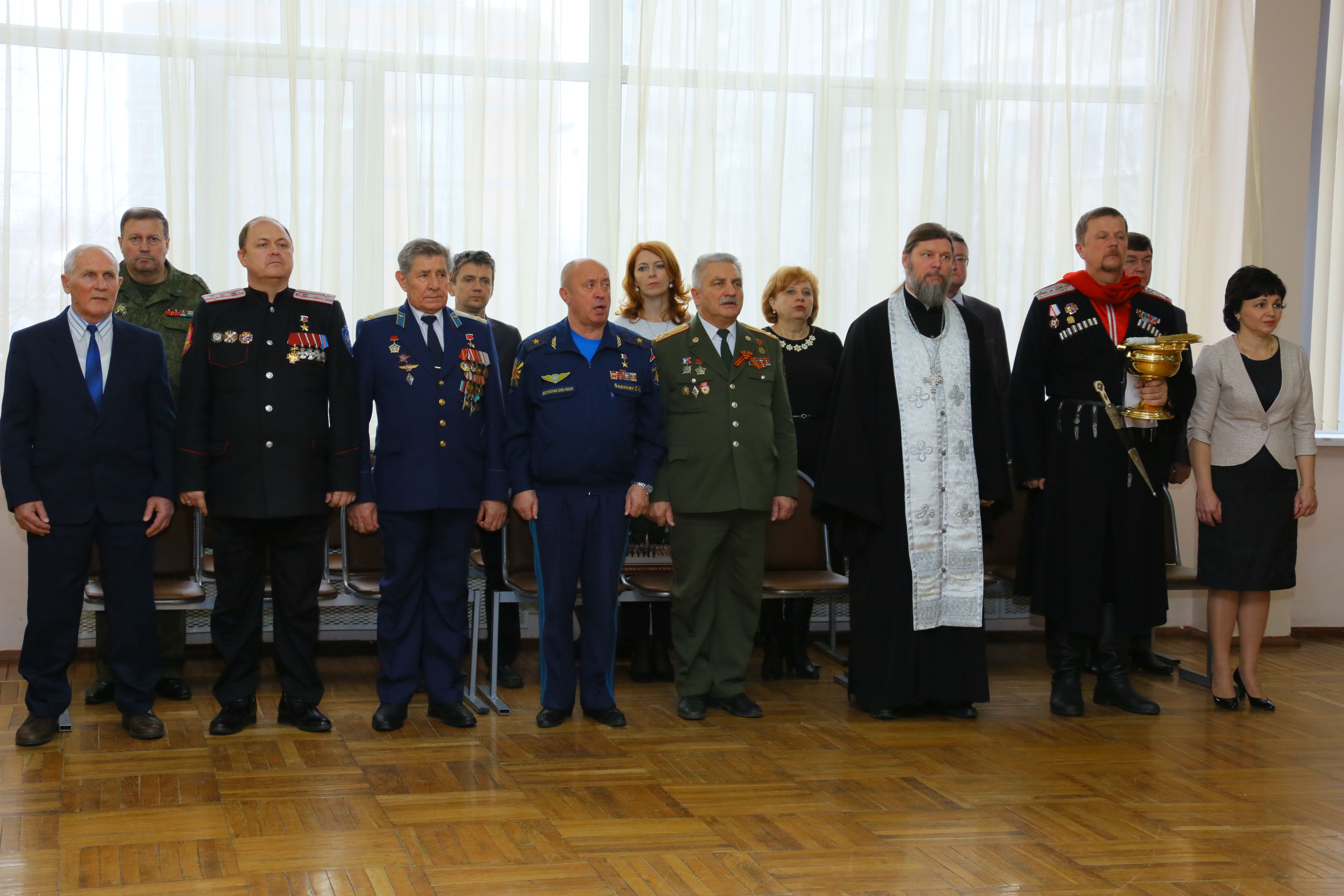 В церемонии крепления полотнища знамени к древку участвовали герои Советского союза и России, представители администрации Западного округа, департамента образования, общественных