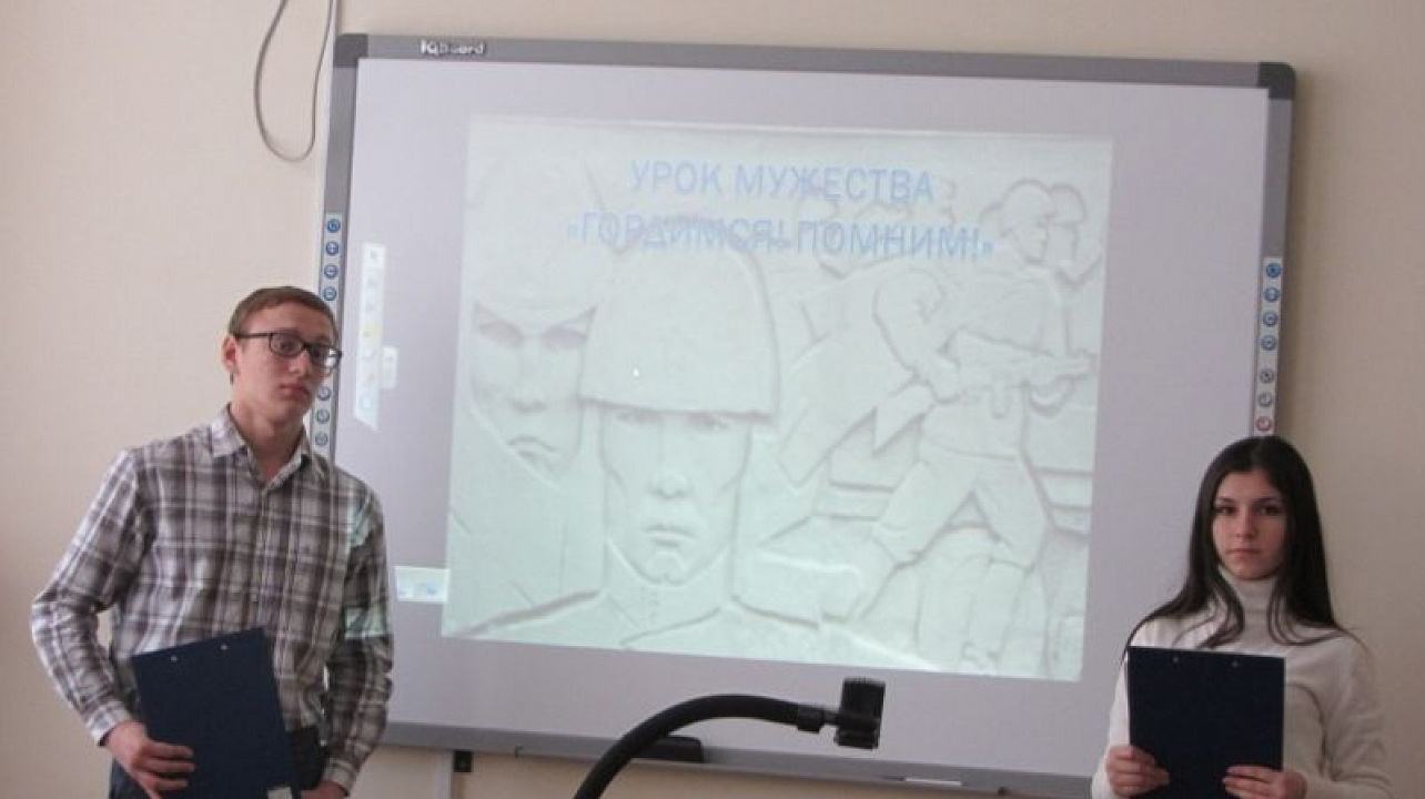17 февраля 2016Студенты Краснодарского торгово-экономического колледжа подготовили уроки памяти на тему «Гордимся, помним!». Во всех группах колледжа ребята рассказывали о своих родственниках и близких, участвовавших в Великой Отечественной войне, подготовили и показали презентацию о героях, сражавшихся за освобождение Краснодара, а также ознакомились с книжной выставкой «Писатели и поэты о Великой Отечественной войне».