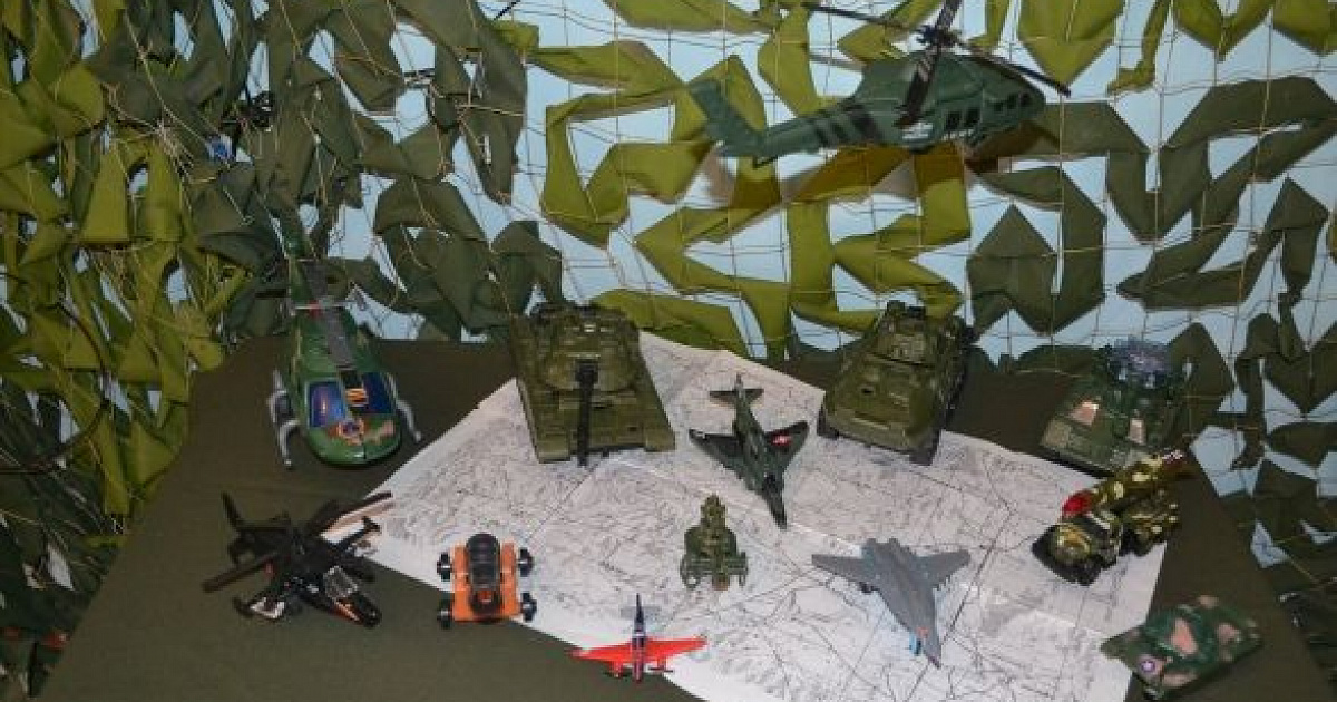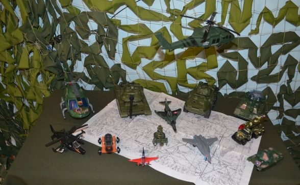 Мальчики принесли различные машинки — маленькие копии танков, бронетранспортеров, самолетов, военные корабли, грузовики, солдат разных видов войск и Армейский сухой паек солдата.