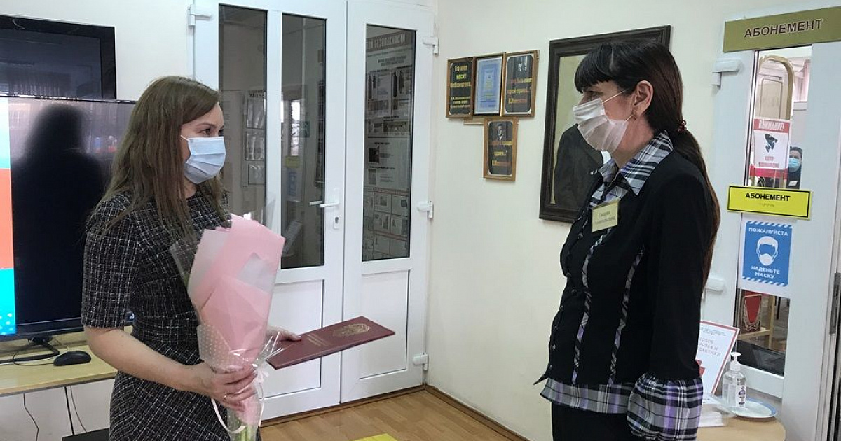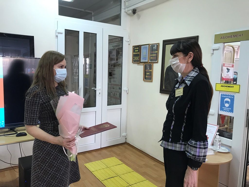 Сегодня, 17 марта, заместитель главы администрации Западного округа Светлана Владимировна Смольская поздравила заведующую библиотекой им.