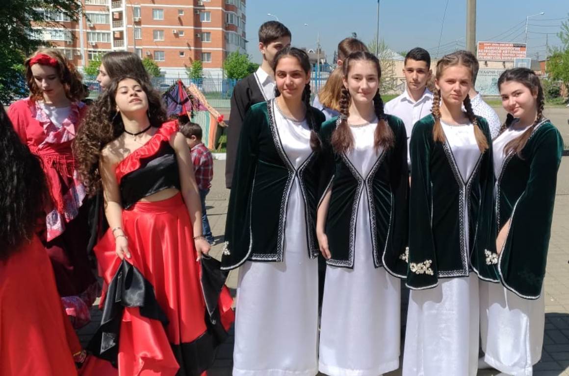 Каждый класс старался выступить как можно ярче. Учащиеся 8 «А» класса поставили на траве настоящий цыганский шатёр. Девочки в ярких цыганских юбках прекрасно станцевали, а после праздника угостили всех желающих вкусными пирогами. Особенно всем запомнилось выступление 5 «В» класса. Ученицы в национальных грузинских костюмах медленно двигались в традиционном танце. Ребята из 6 «Б» класса представили Россию, весело увлекая всех присутствующих в свой задорный танец. А за ними ученики 6 «В» класса исполнили лирический белорусский танец «Купалинка». Праздник продолжили зажигательные таджикские, турецкие, украинские танцы, задорные песни казаков и азербайджанцев.