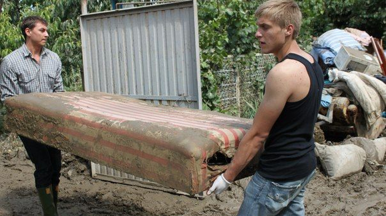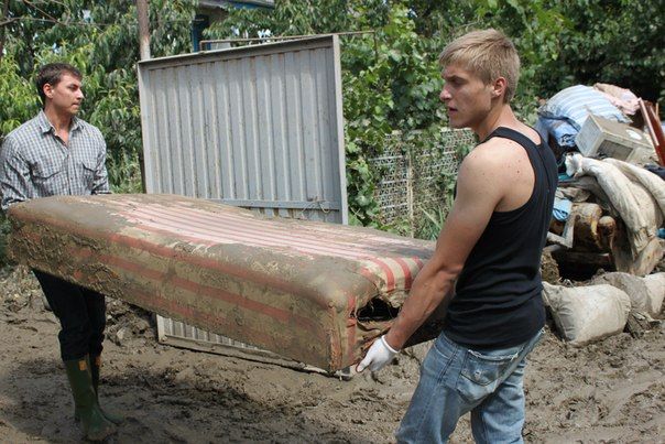 Работы там очень много: необходимо раздавать гуманитарную помощь, разгребать завалы, выносить испорченные вещи. Первые этажи домов были полностью затоплены, и ничего не подлежит восстановлению. Ил во дворах сохнет очень медленно, воде некуда уходить. Подвалы полны воды. Колодцы восстановлению не подлежат.