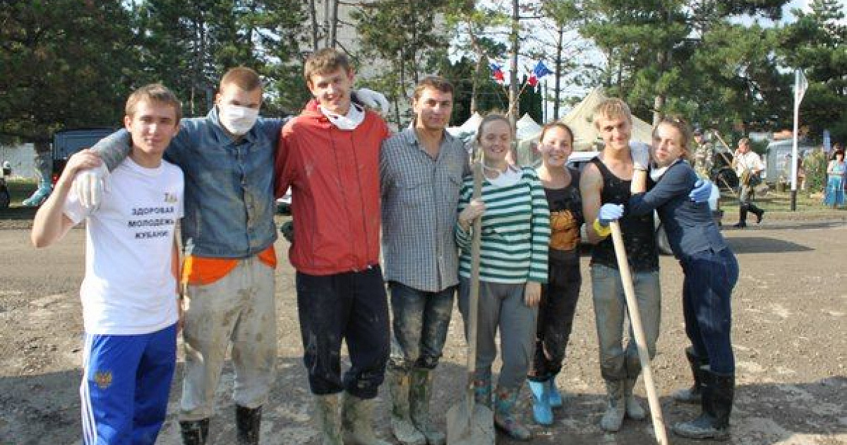 Волонтером может стать каждый. Привозят прямо к месту расположения краснодарского штаба помощи, который расположен на улице Советской, возле техникума. Штаб возглавляет лично Владимир Лазаревич Евланов. Он и ведет инструктаж, и руководит ликвидацией последствий. После инструктажа все получают экипировку: лопаты и сапоги.