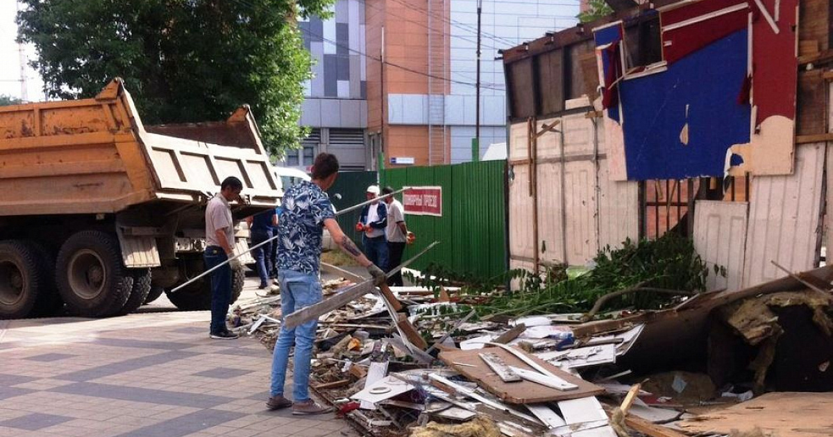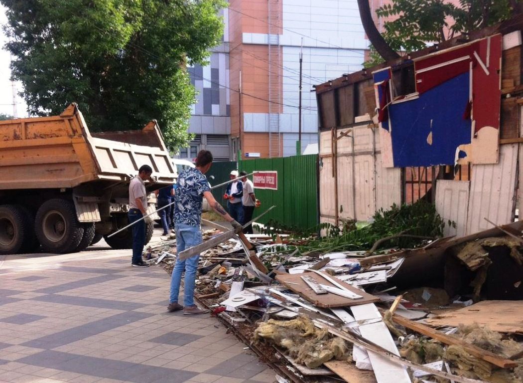 Так, на пересечении улиц Октябрьской и Головатого после демонтажа нестационарного торгового объекта, установленного и эксплуатируемого на территории муниципального образования город Краснодар без разрешения на установку и эксплуатацию, выявлен строительный мусор.