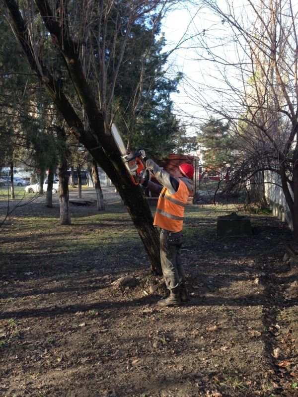 В настоящее время на основании заключенного муниципального контракта с подрядной организацией ООО «ТРИО» ведутся работы по рубке сухих и аварийных деревьев, а также формовочной и санитарной обрезке.