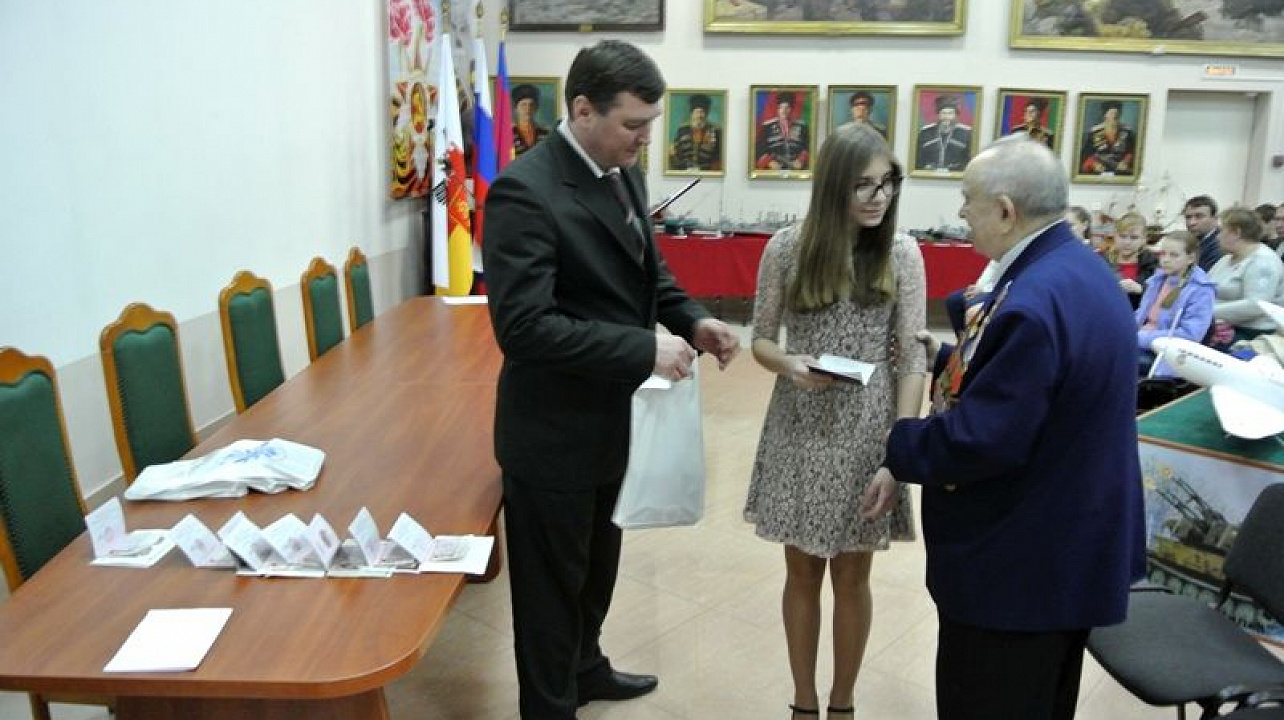 19 февраля 201618 февраля в Выставочном зале Боевой Славы состоялось очередное торжественное вручение паспортов молодым людям, достигшим 14-летнего возраста, приуроченное ко Дню защитника Отечества. В мероприятии приняли участие 30 ребят из двух внутригородских округов города Краснодара, пришедшие с родителями, бабушками и дедушками.