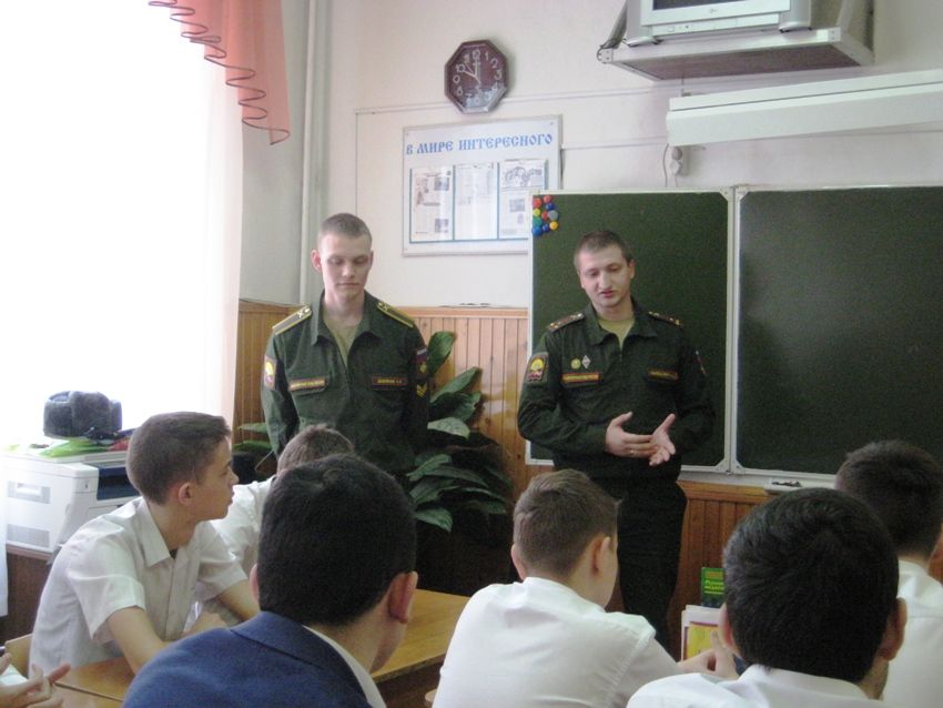 Гостями нашей школы были курсанты Краснодарского высшего военного училища им. С.М.Штеменко Демяник Николаем и Иванов Илья.