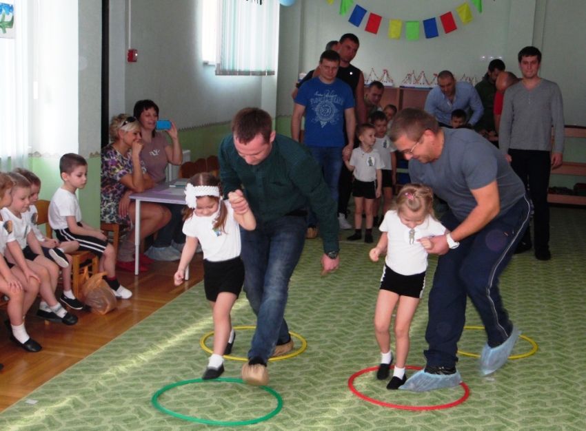 В ходе мероприятия дети и взрослые приняли участие в эстафетах и конкурсах. За результатами следило жюри, в состав которого вошла женская половина - мамы воспитанников.