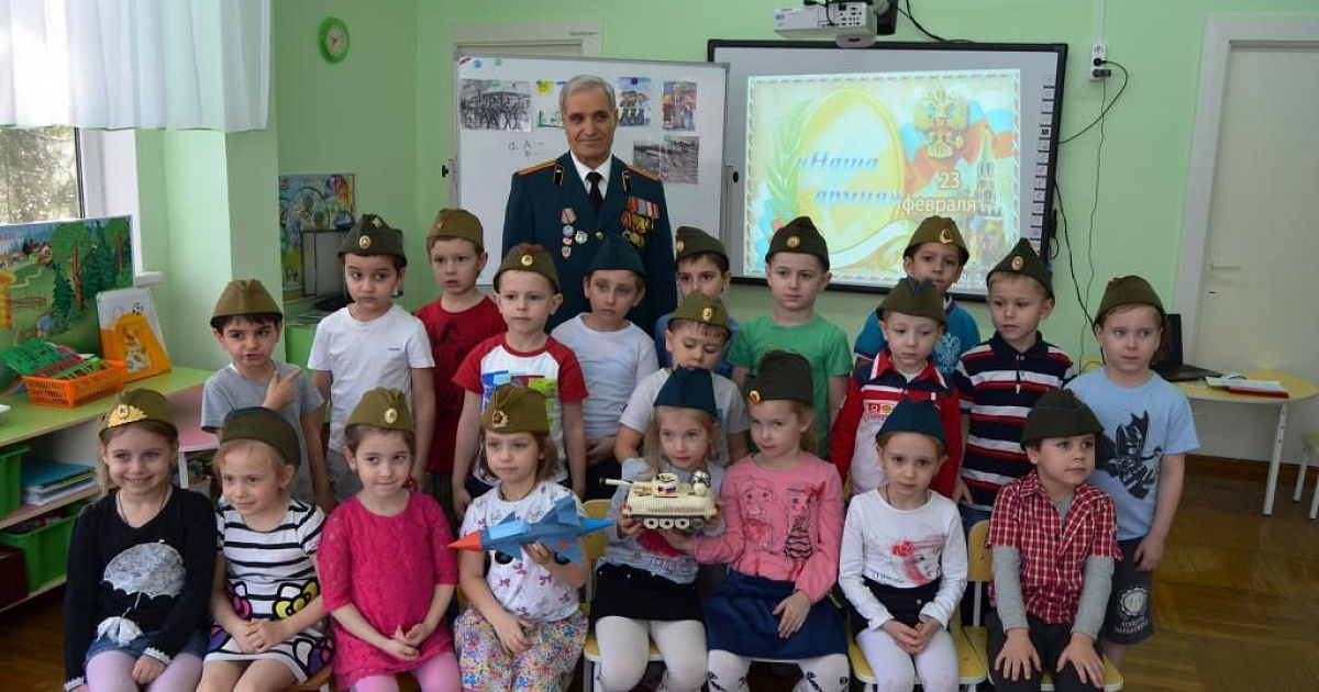 19 февраля 2017В преддверии Дня защитника Отечества, в cтаршей группе детского сада № 232 состоялась встреча с майором в отставке, связистом, Василиади Александром Дмитриевичем, ветераном Вооружённых сил России.