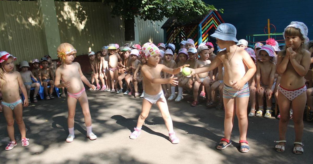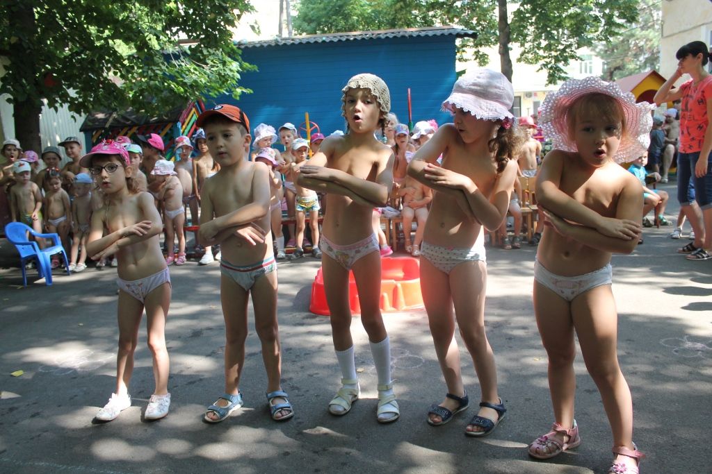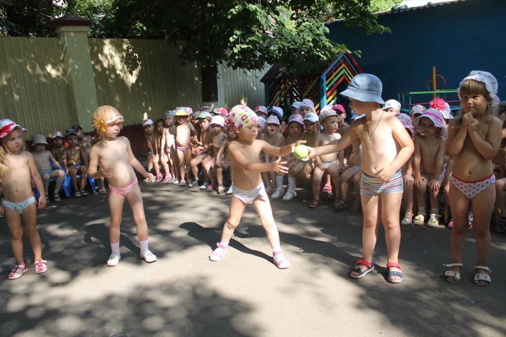 Для каждой возрастной группы было дано свое задание: ребята младшей группы играли в игру «Собери яблоки по цвету», воспитанники средней группы играли в народную игру «Катись яблочко по кругу», старшая группа соревновалась в перекатывании «арбузов», а подготовительная-участвовала в эстафете «Перенеси яблоки ложкой».