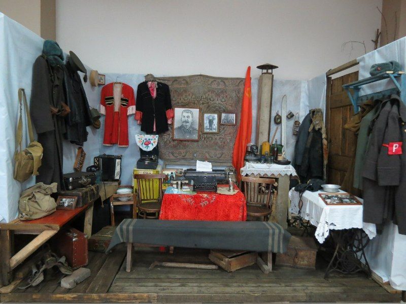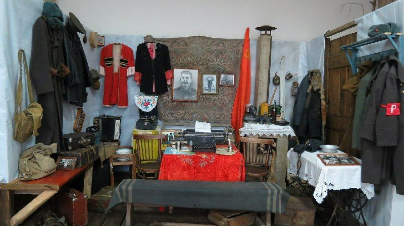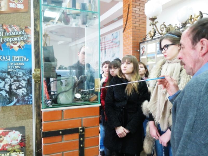 После просмотра кино ребята ознакомились с экспонатами Выставочного зала Боевой Славы, где были представлены предметы времён ВОВ и целые уголки, стилизованные под землянку солдата, кабинет военного врача, хату казака.