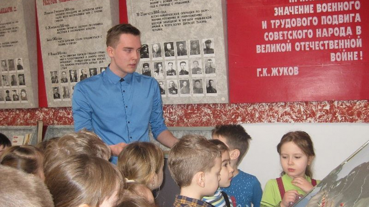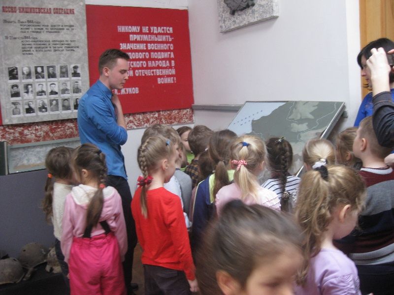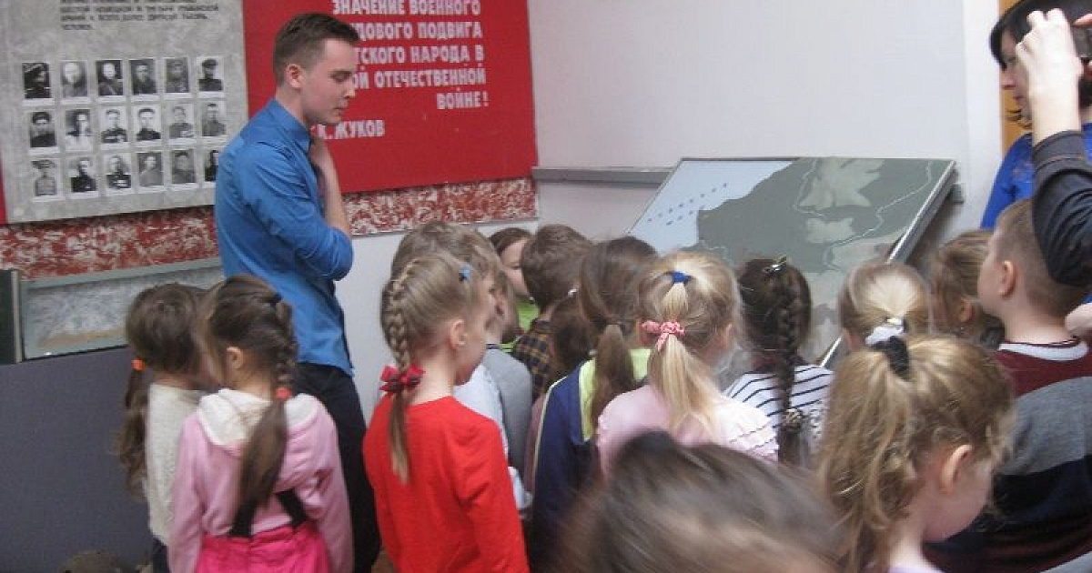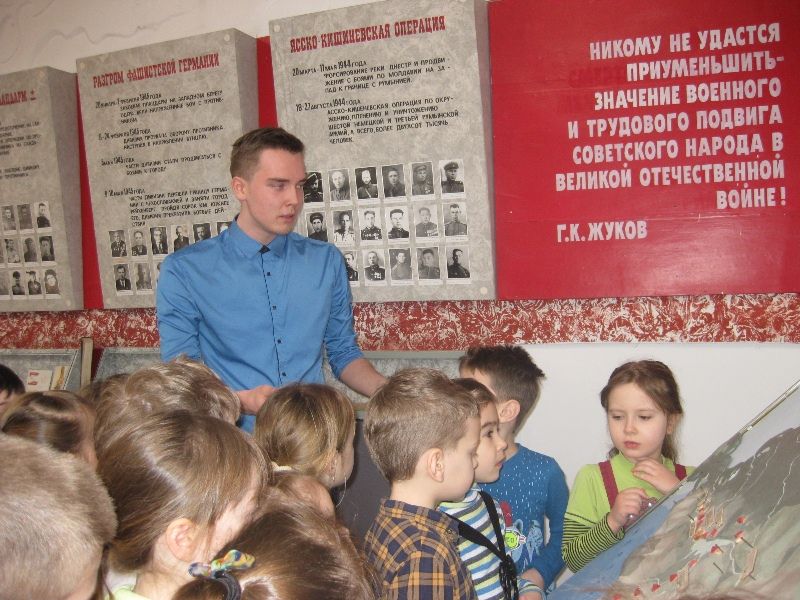 Ребята из гимназии № 87 Западного округа провели экскурсию по школьному музею Боевой Славы для воспитанников детского сада № 230