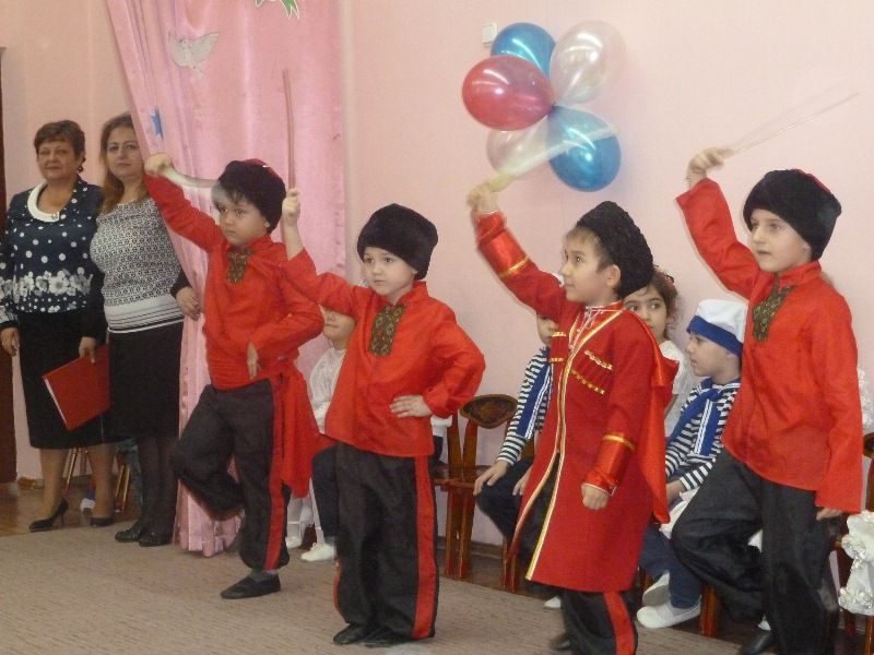 Ребята старшей и подготовительной логопедической группы подготовили концерт: рассказывали стихи, пели песни, танцевали, играли в веселые игры. Казаки рассказали ребятам об обычаях, традициях и военной службе.