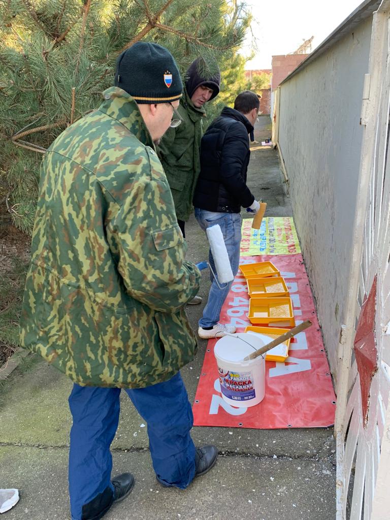 Участники субботника на территории, где расположен Вечный огонь, покрашена подпорная стена и заменен социальный баннер с праздничной тематикой. На территории кладбища обновили краску на воротах, элементов на мемориалов Офицерского захоронения, а также основаниях электроопор.