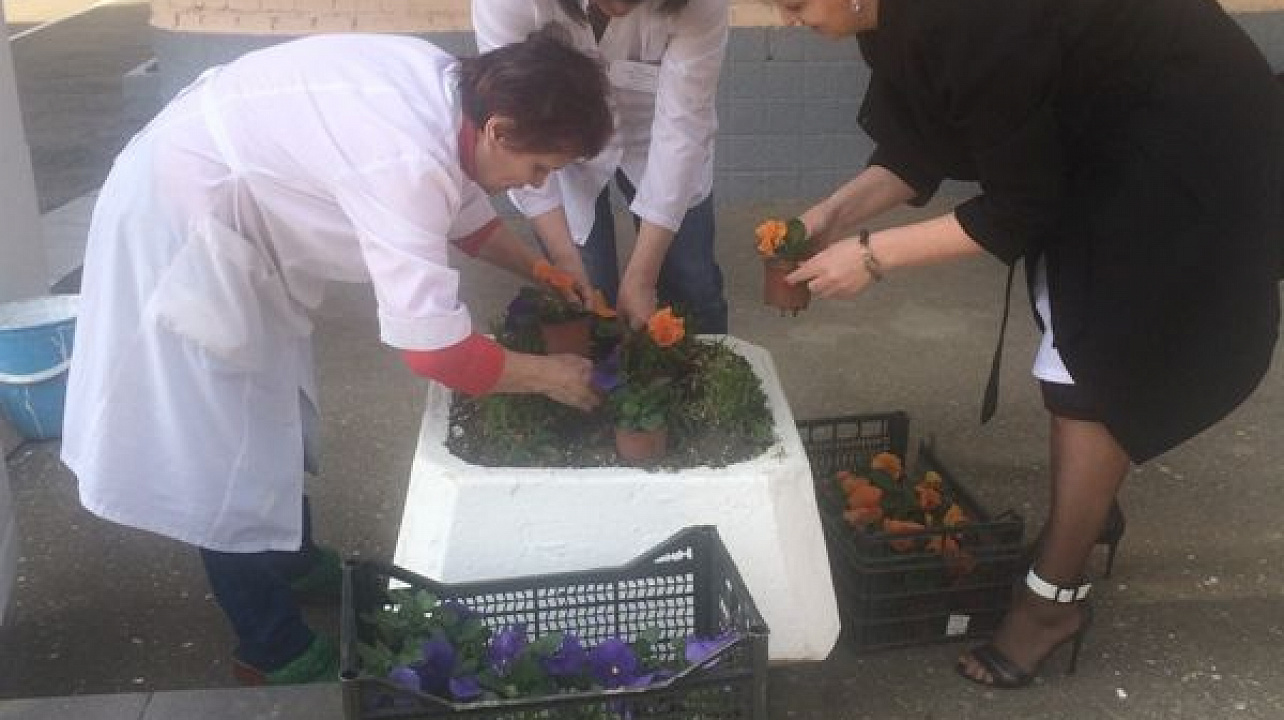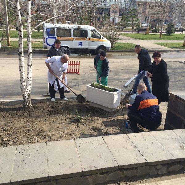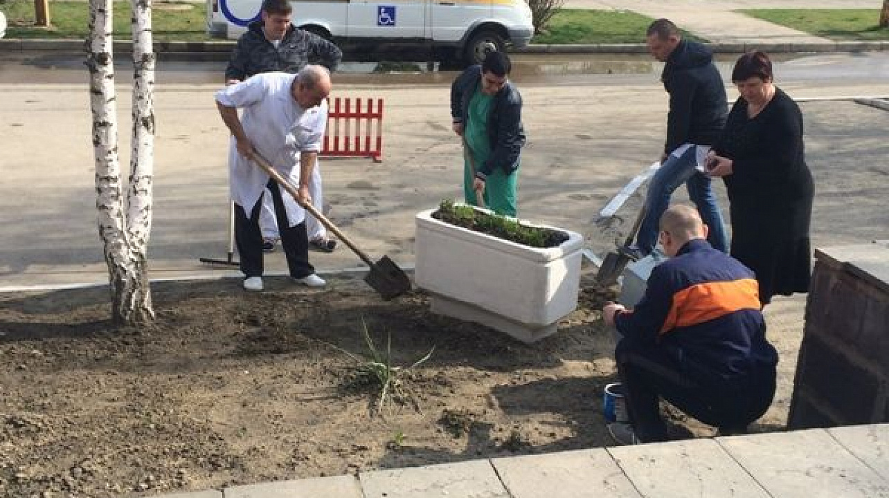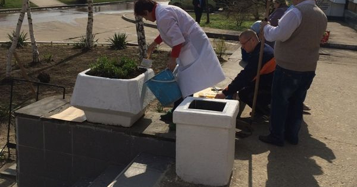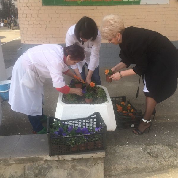 Навести чистоту на прилагающей территории врачи взялись собственными силами. За несколько часов под руководством главврача Галины Масушко они взрыхлили газоны, побелили бордюрный камень, покрасили вазоны и мусорные урны, а также высадили цветы и кустарники.