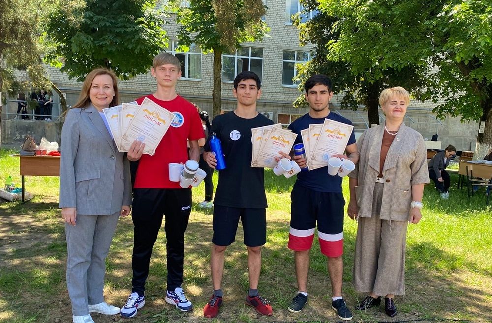 Юноши колледжа допризывного возраста соревновались в прохождении нормативов: разборка и сборка автомата, первая помощь при ранениях, подтягивание на перекладине, отжимание, чистка картофеля на время, конкурс на координацию движений, прыжки в длину с места, подъём туловища из положения лёжа на спине, бег на дистанцию 60 м., прохождение полосы препятствий.