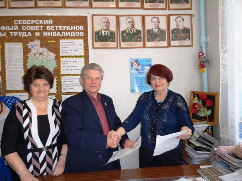 Разумеется, речь зашла и о подготовке к 70 – летию Победы. Гости и хозяева обменялись материалами по военно-патриотическому и духовно-нравственному воспитанию, среди которых воспоминания и биографии ветеранов, чьи имена занесены в книгу Памяти. После чего руководители ветеранских организаций подписали Договор о сотрудничестве и взаимопомощи. И тут же обсудили планы совместных мероприятий. В том числе участие северских ветеранов в Фестивале народного творчества Западной окружной ветеранской организации.